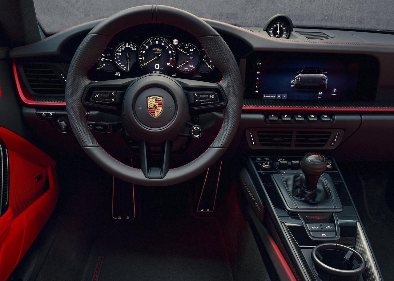 值得一提的是,该车沿用了911 S/T的打造思路,下放了大量GT3 RS级别的硬件,例如RS风格的碳纤前翼子板、双通风碳纤机盖、宽体后翼子板,以及GT3 Touring规格的升降式扰流板。底盘方面,它搭载了GT3系列专属的前双叉臂悬架,而非普通911的麦弗逊结构。还有就是,它仅提供6速手动变速箱,对于喜欢驾驶的消费者来说,确实是相当具有吸引力。另外该车的敞篷机构为电动开合,仅需12秒便可完成。