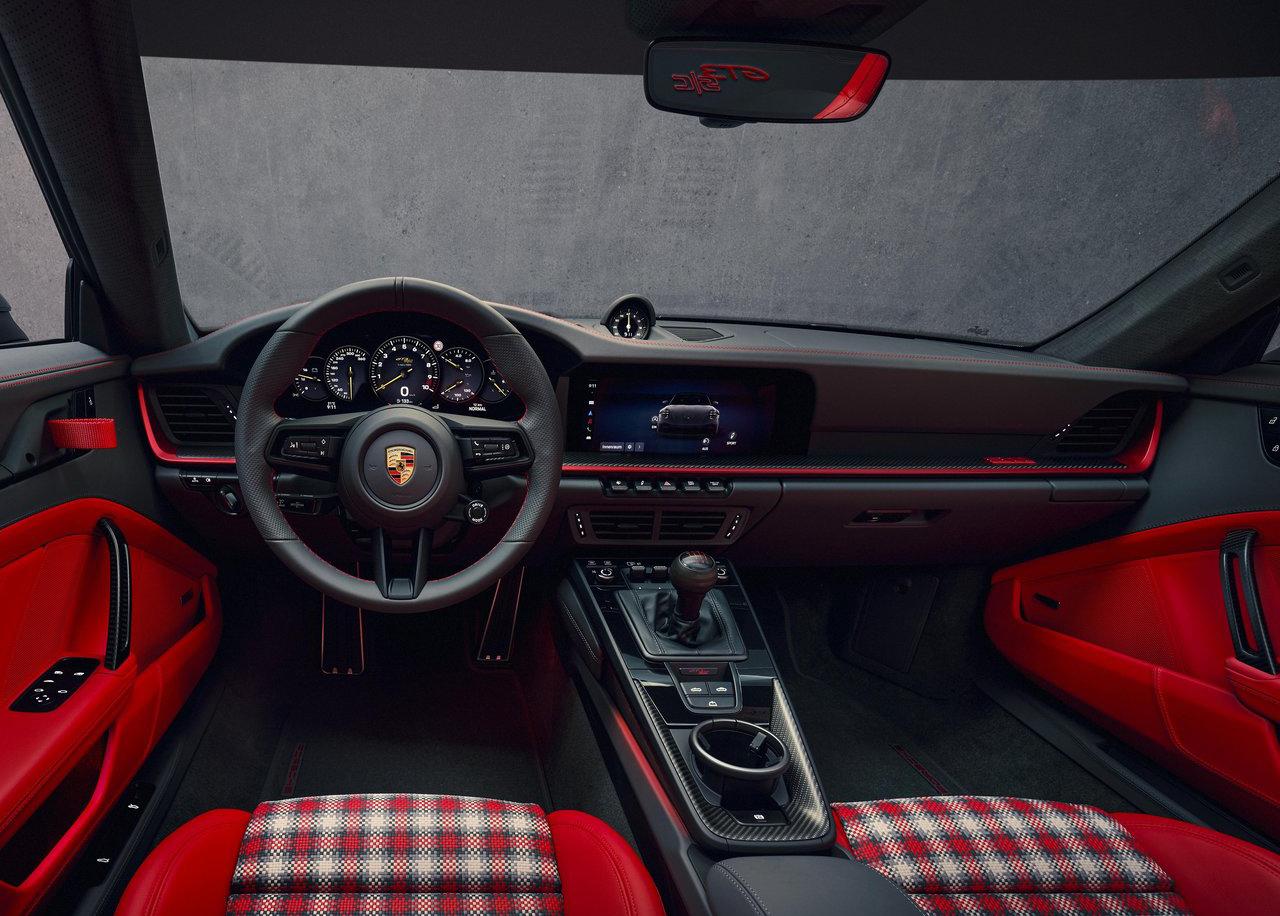 至于车厢内部则采用复古红格纹座椅与胡桃木换挡杆。此外,购车用户还可专属定制保时捷Design腕表,搭配钛金属表壳与座椅材质表带。