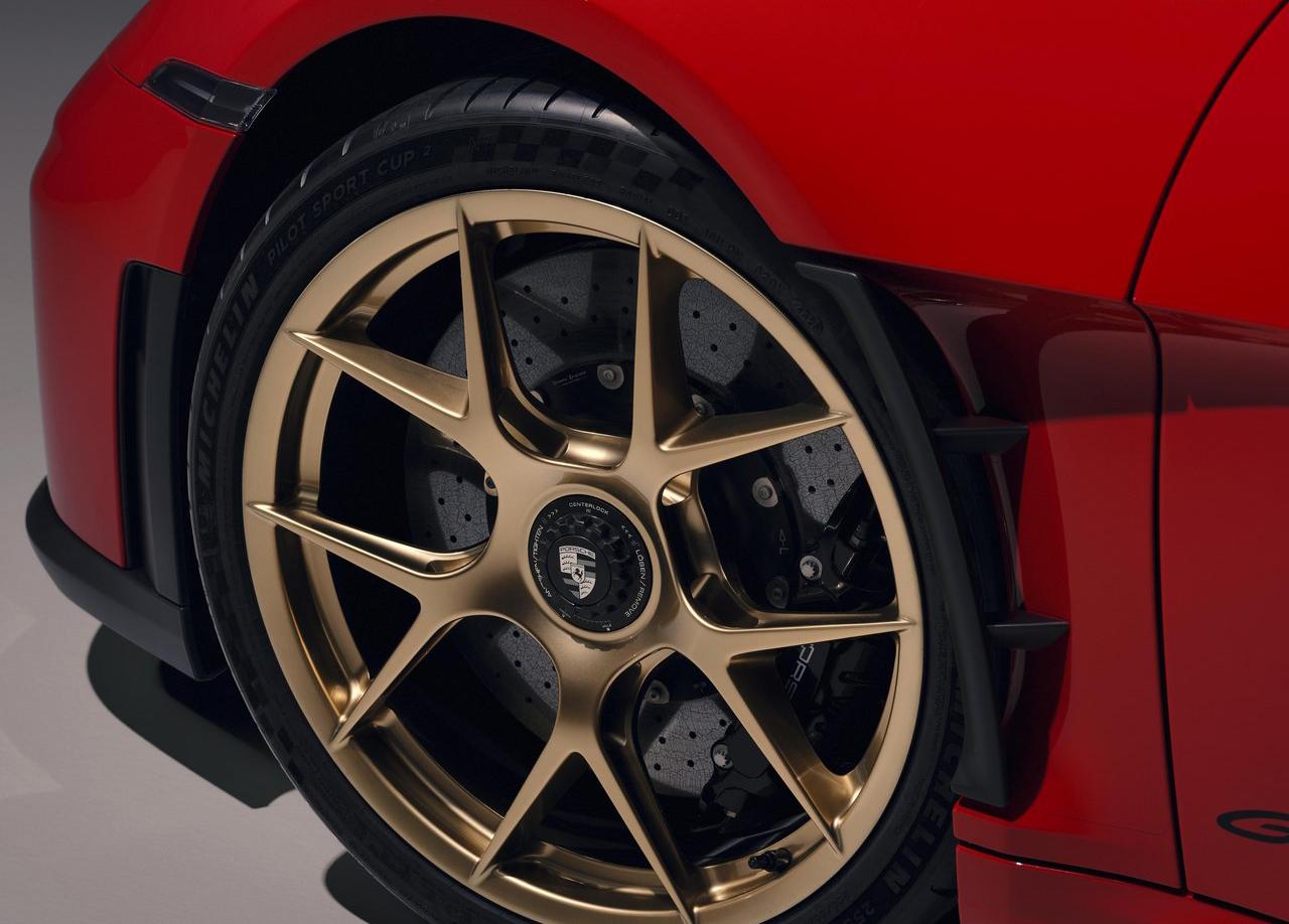 而为了抵消敞篷带来的增重,保时捷采用了大量轻量化措施:碳纤车身部件、PCCB碳陶刹车、镁合金中央锁止轮圈,还有碳纤后防倾杆。最终整备质量为1507kg,仅比GT3 Touring硬顶重38kg,远低于Carrera S敞篷84kg的增重幅度。