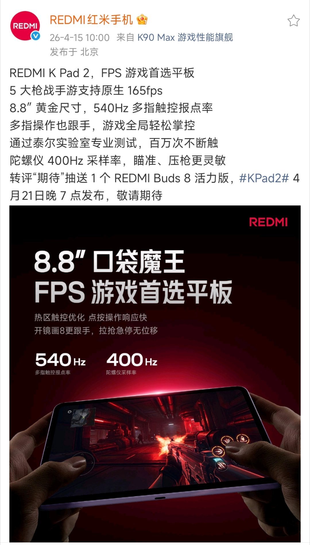 Redmi K Pad常规迭代来了小平板更新天玑9500正代旗舰,电池上高密度硅