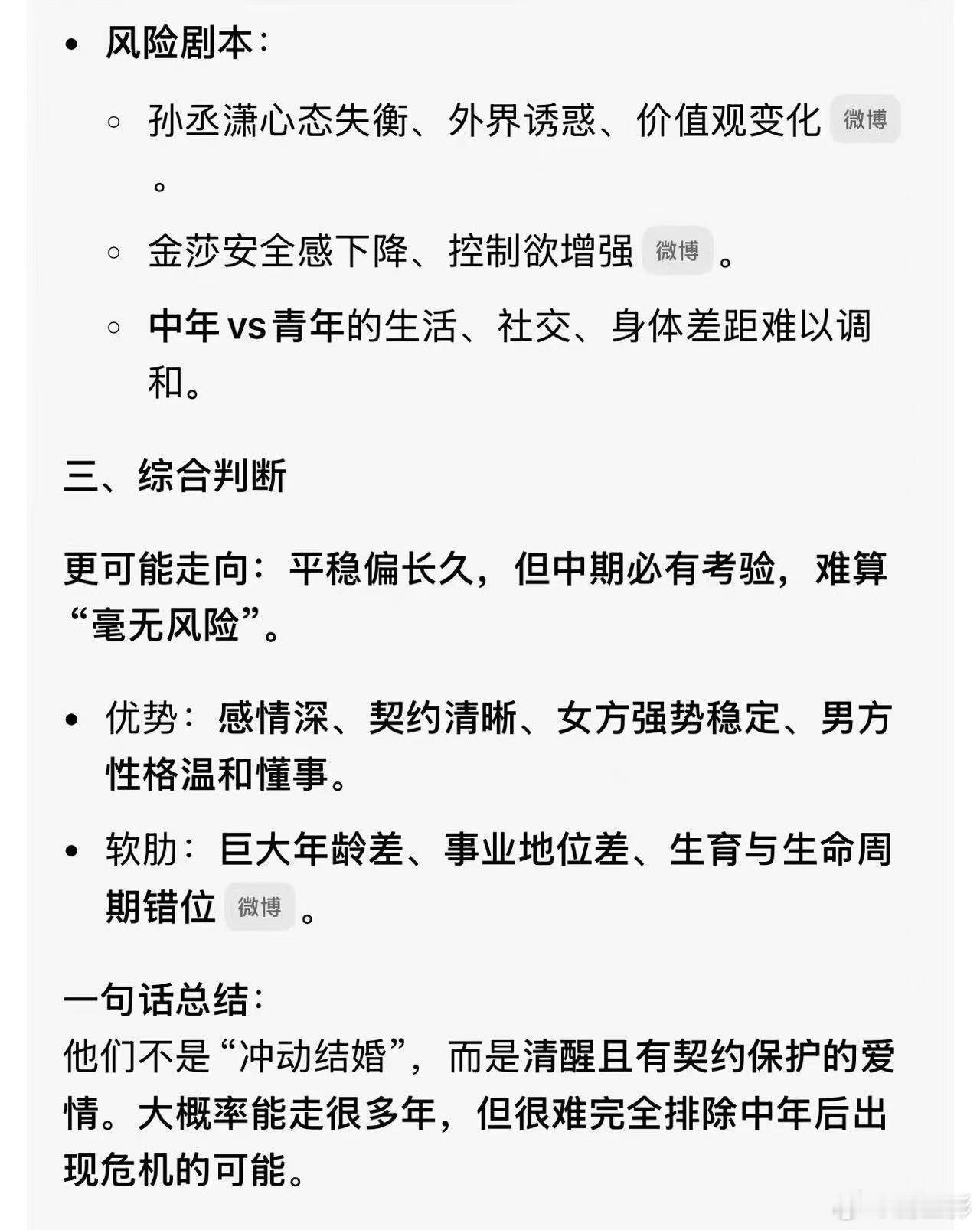 AI说金莎孙丞潇中年会有婚姻危机网友用豆包问金莎孙丞潇能不能长久 没想到网友用豆