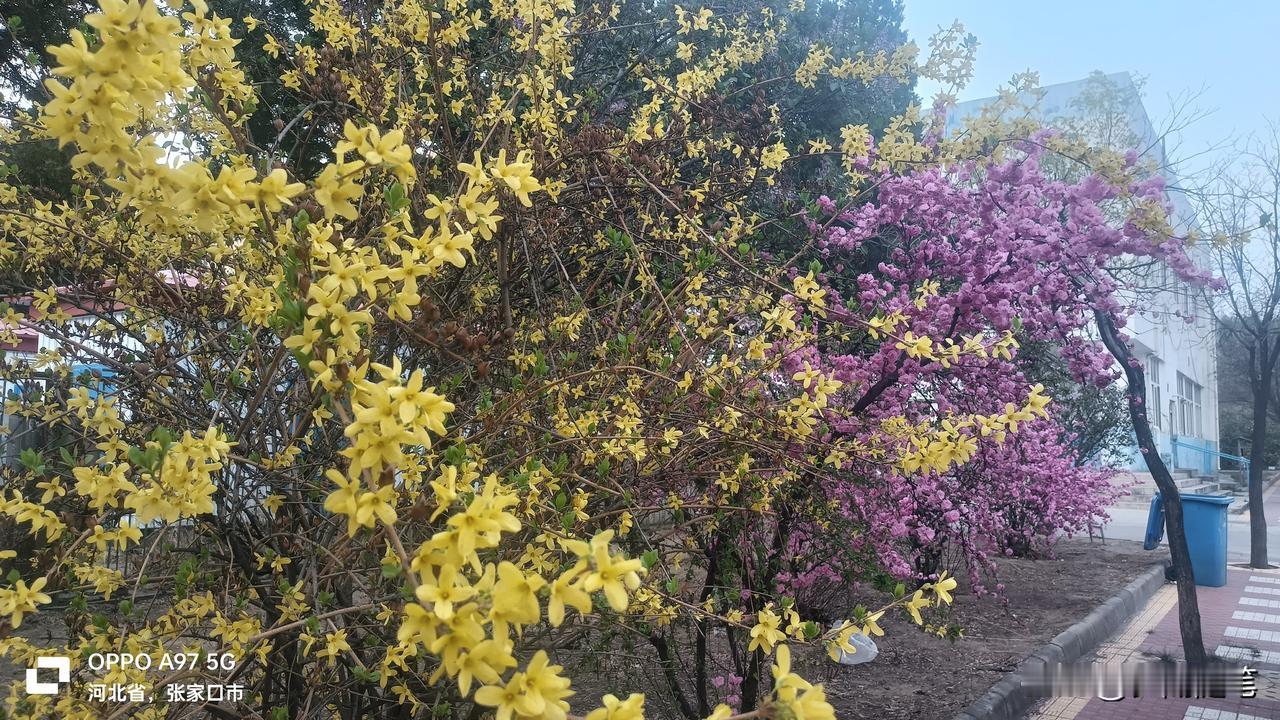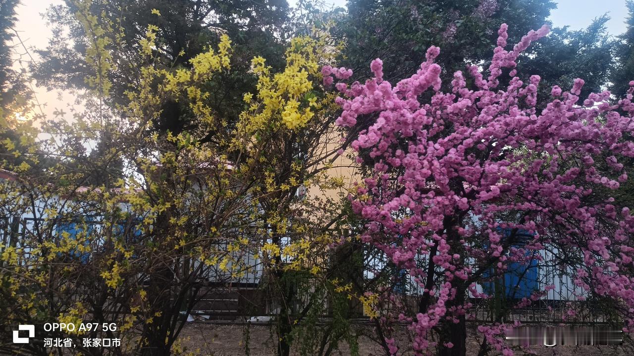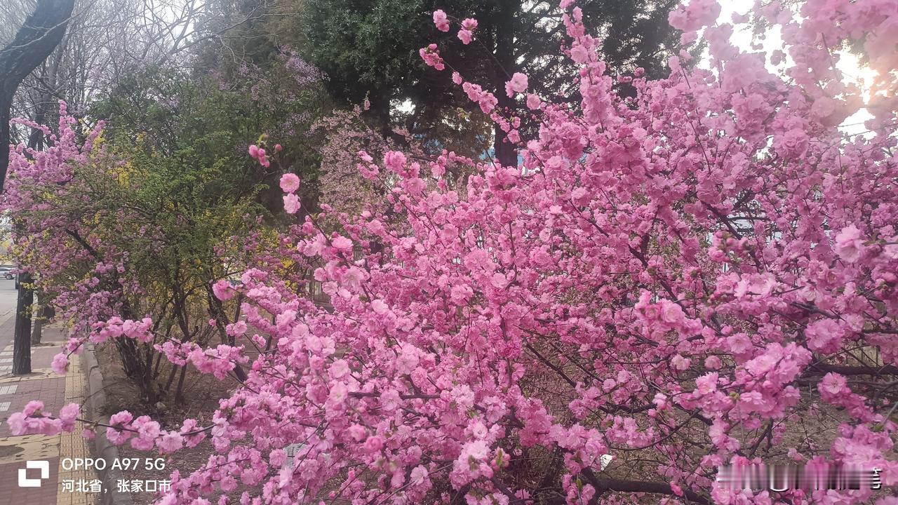 1. 小区花树开得真好,粉艳艳的,把家旁的春光都留住啦。 2. 满枝繁花真喜