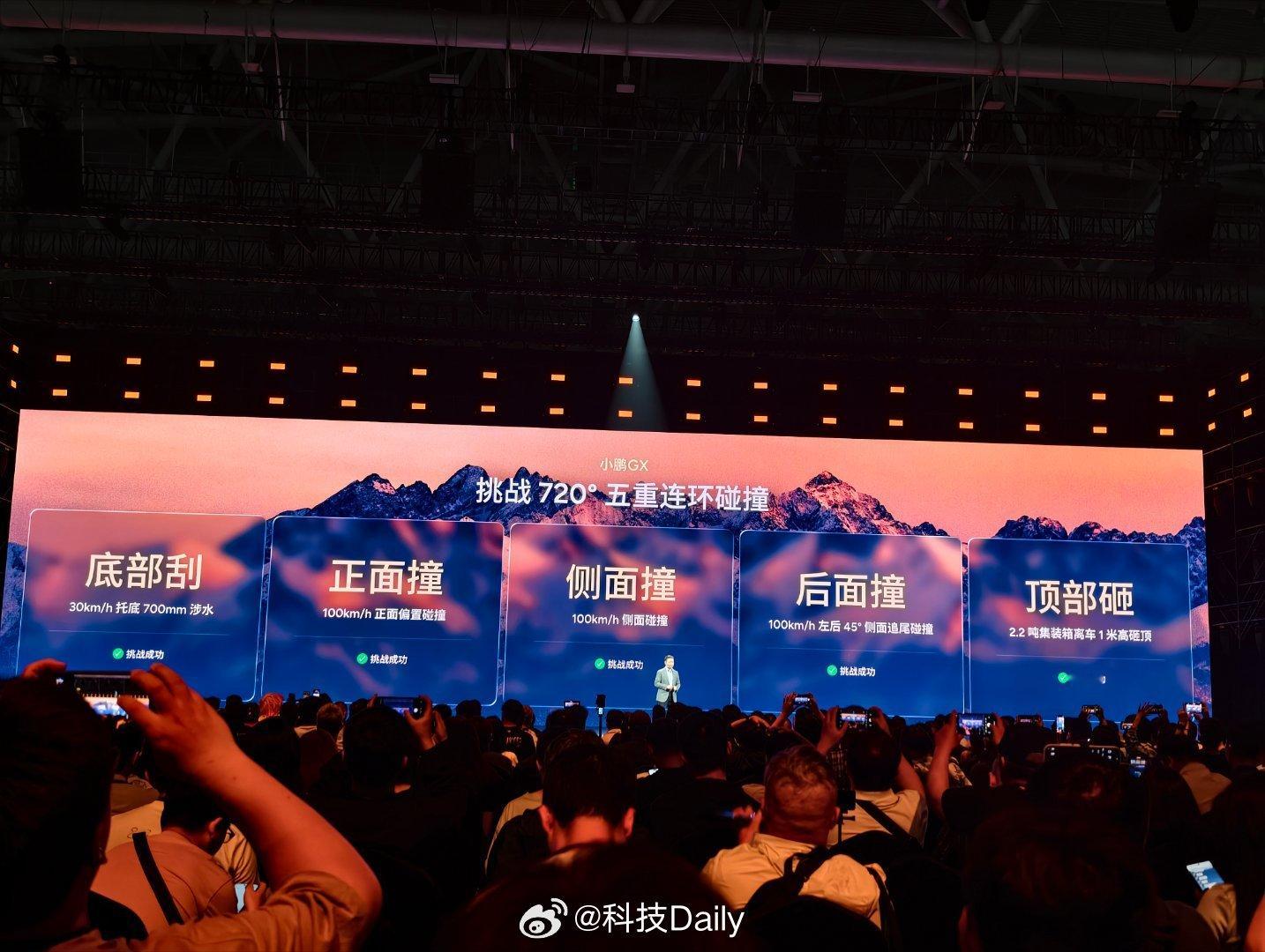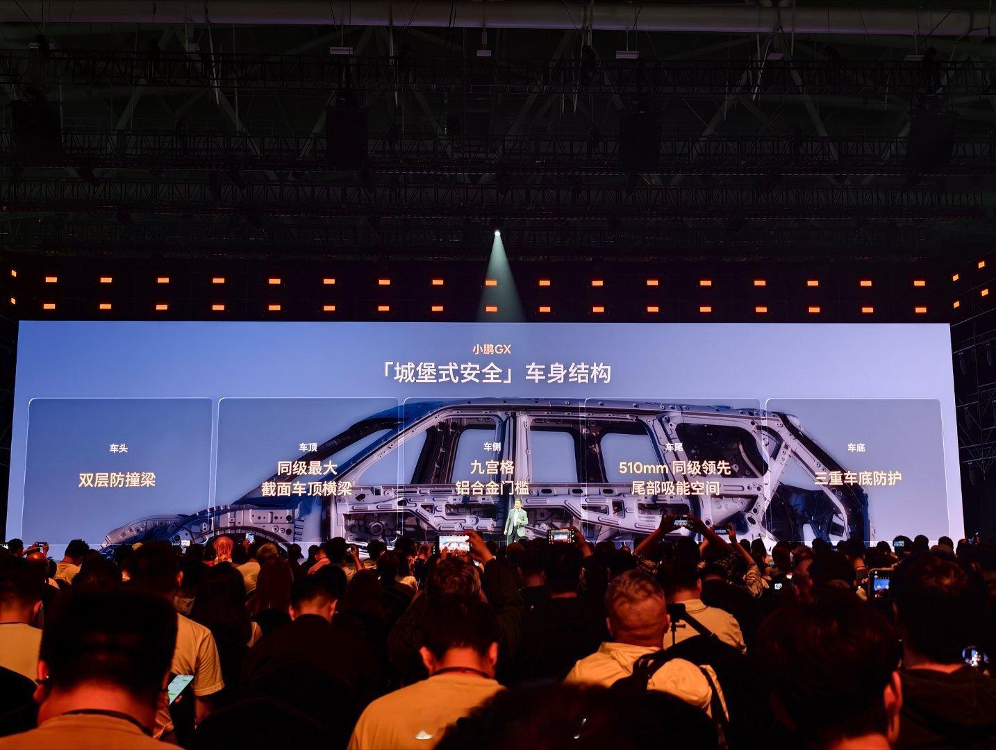 小鹏GX,以三大旗舰安全体系,打造名副其实的安全新旗舰。车身采用行业最大16000T前后一体大压铸,并从车底、车头、车侧、车尾、车顶到车内的六维全域防护,行业领先的整车11个安全气囊,并成功通过行业首次720°五重连环碰撞挑战,覆盖托底、涉水、正侧追尾、顶压全场景,为每一次出行带来最大安全底气。何小鹏称GX上下前后左右都抗撞小鹏GX把四大安全测试场搬到发布会