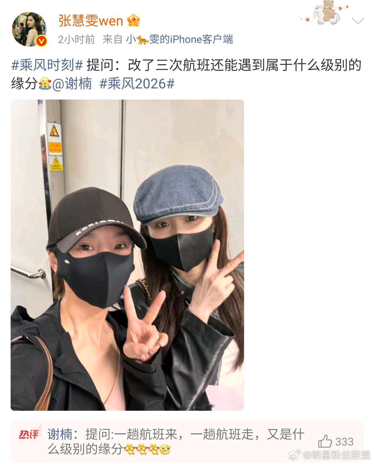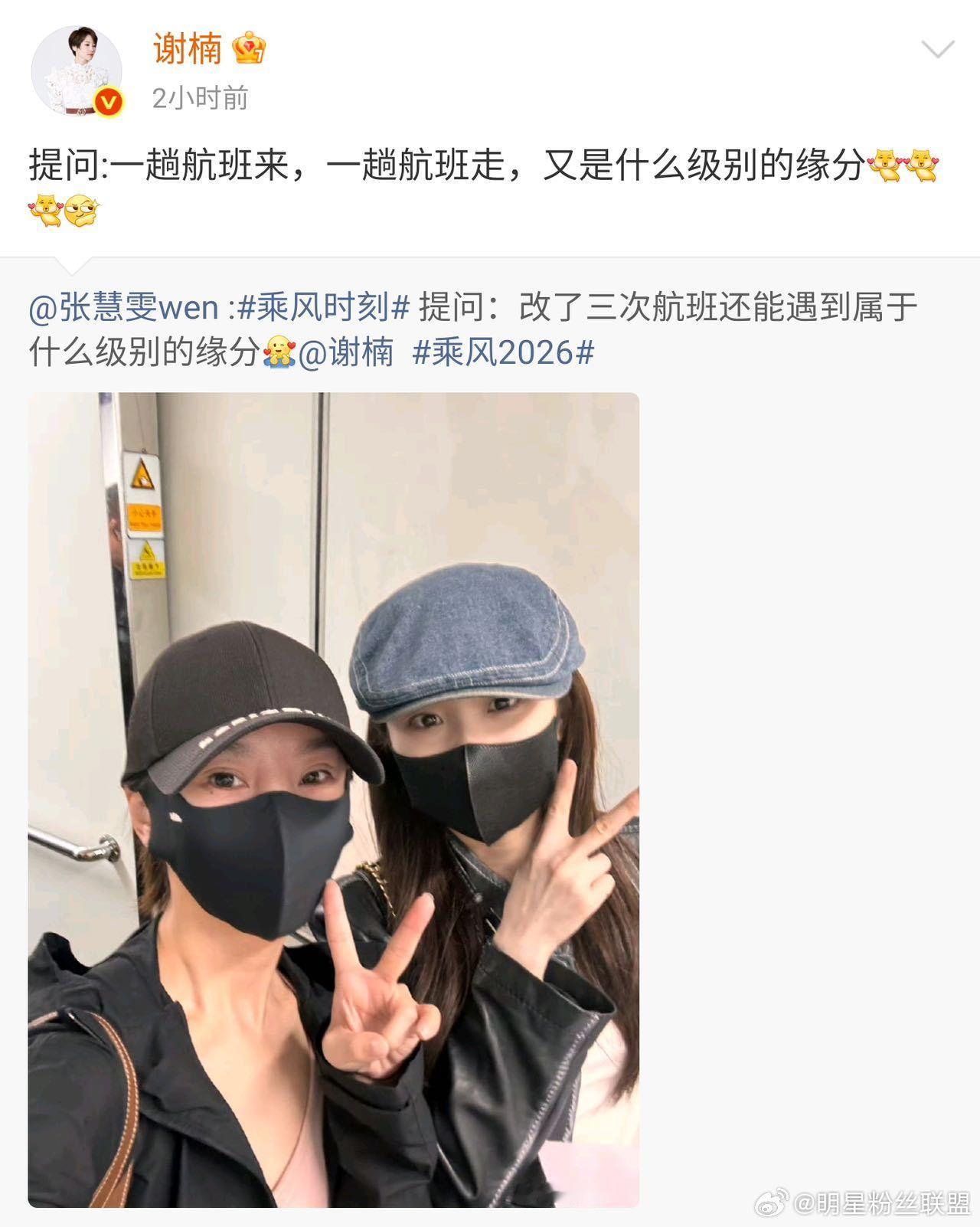 张慧雯谢楠改三次航班还偶遇张慧雯改了三次航班偶遇谢楠这是什么天选同框!离开长沙改签三次,依旧和偶遇,连来程都同一航班,太有默契啦~乘风2026