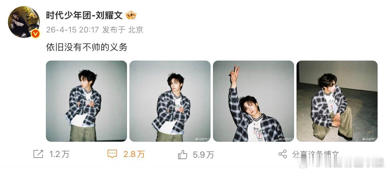 刘耀文说依旧没有不帅的义务 刘耀文发布新图,帅得很有底气了!刘耀文空降