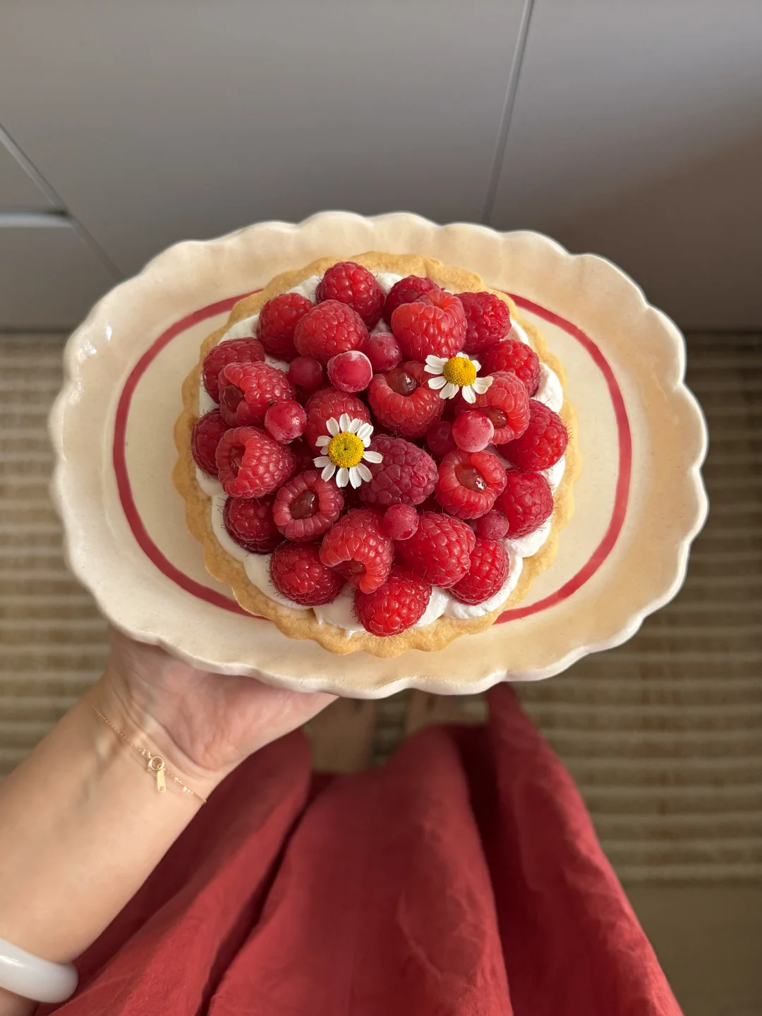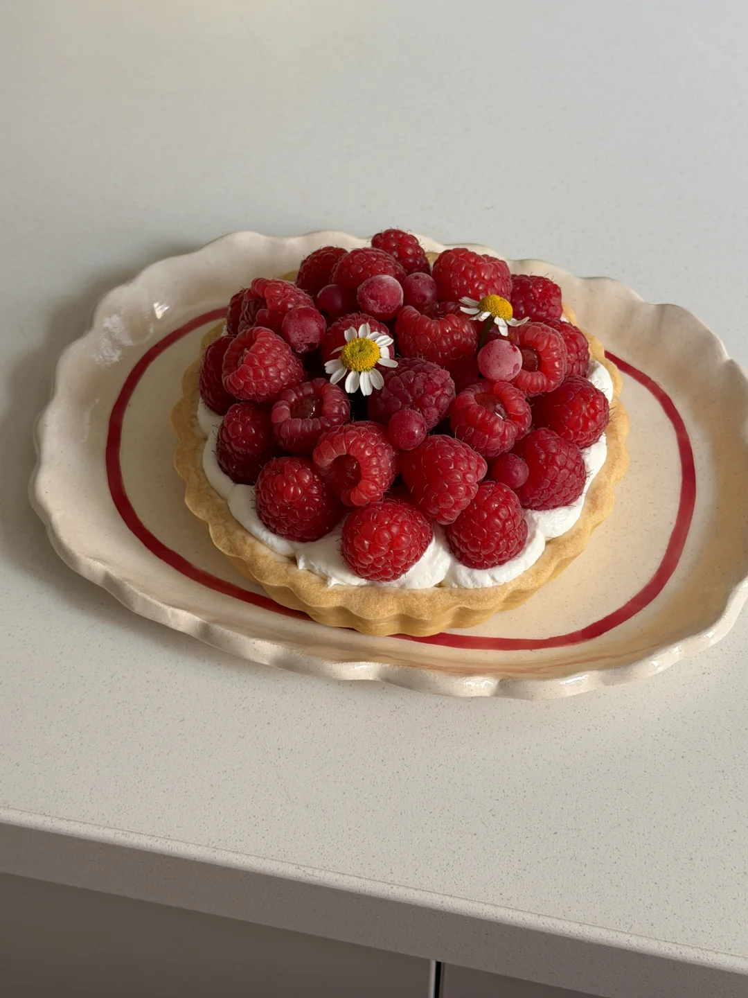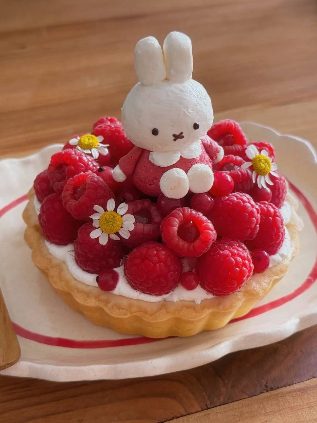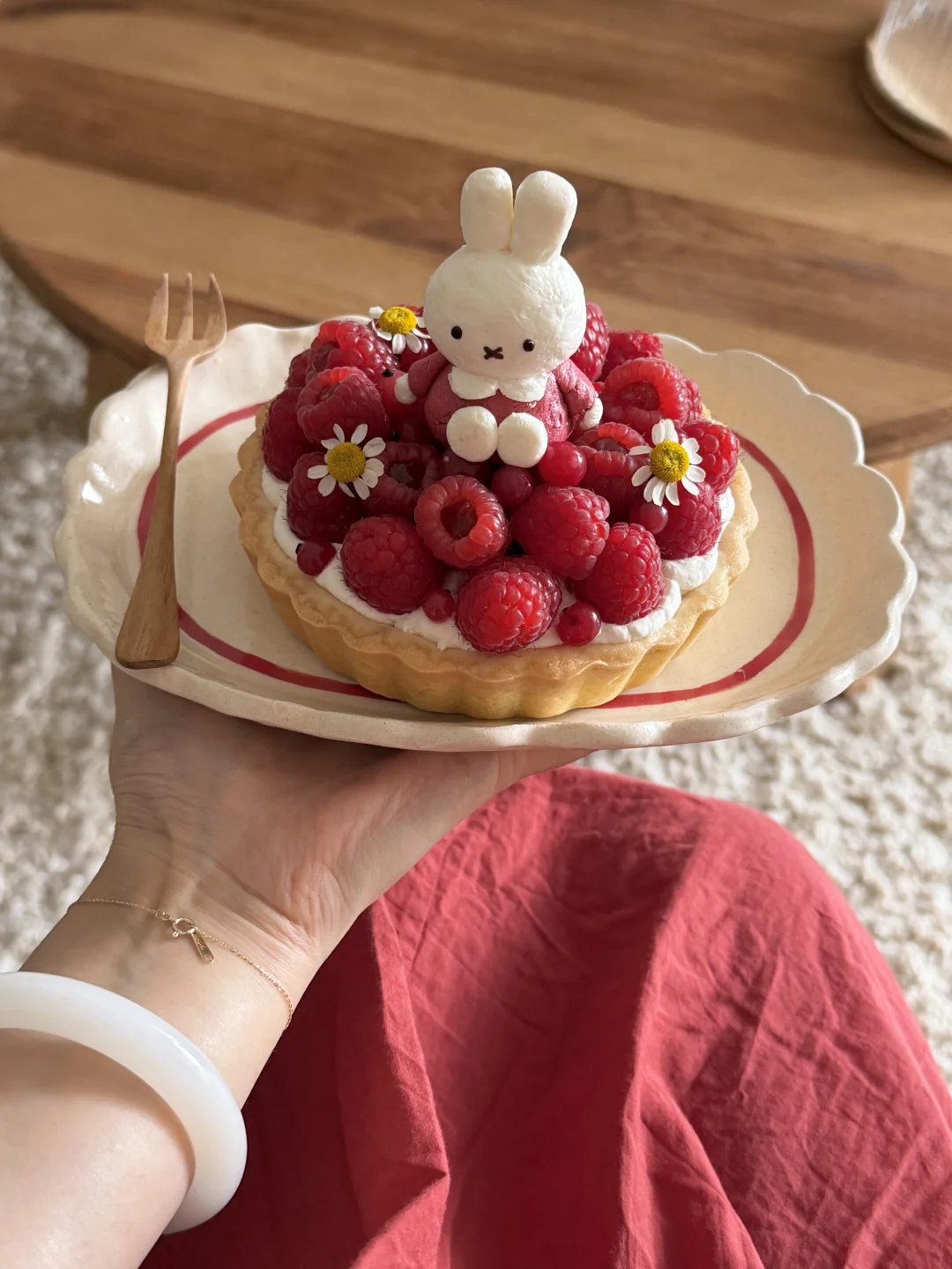 7️⃣希腊酸奶挤入挞中,铺上醋栗,树莓,给树莓里挤上草莓酱丰富口味