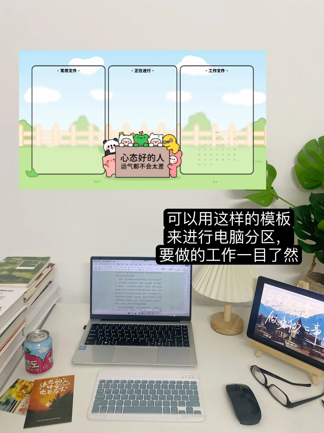 把不同的资料分类整理好,要找什么资料马上能找到,这里不仅是书桌,还有电脑的文件也一样。电脑桌面将工作按照“待办”“正在进行”等分清楚,要干什么一目了然