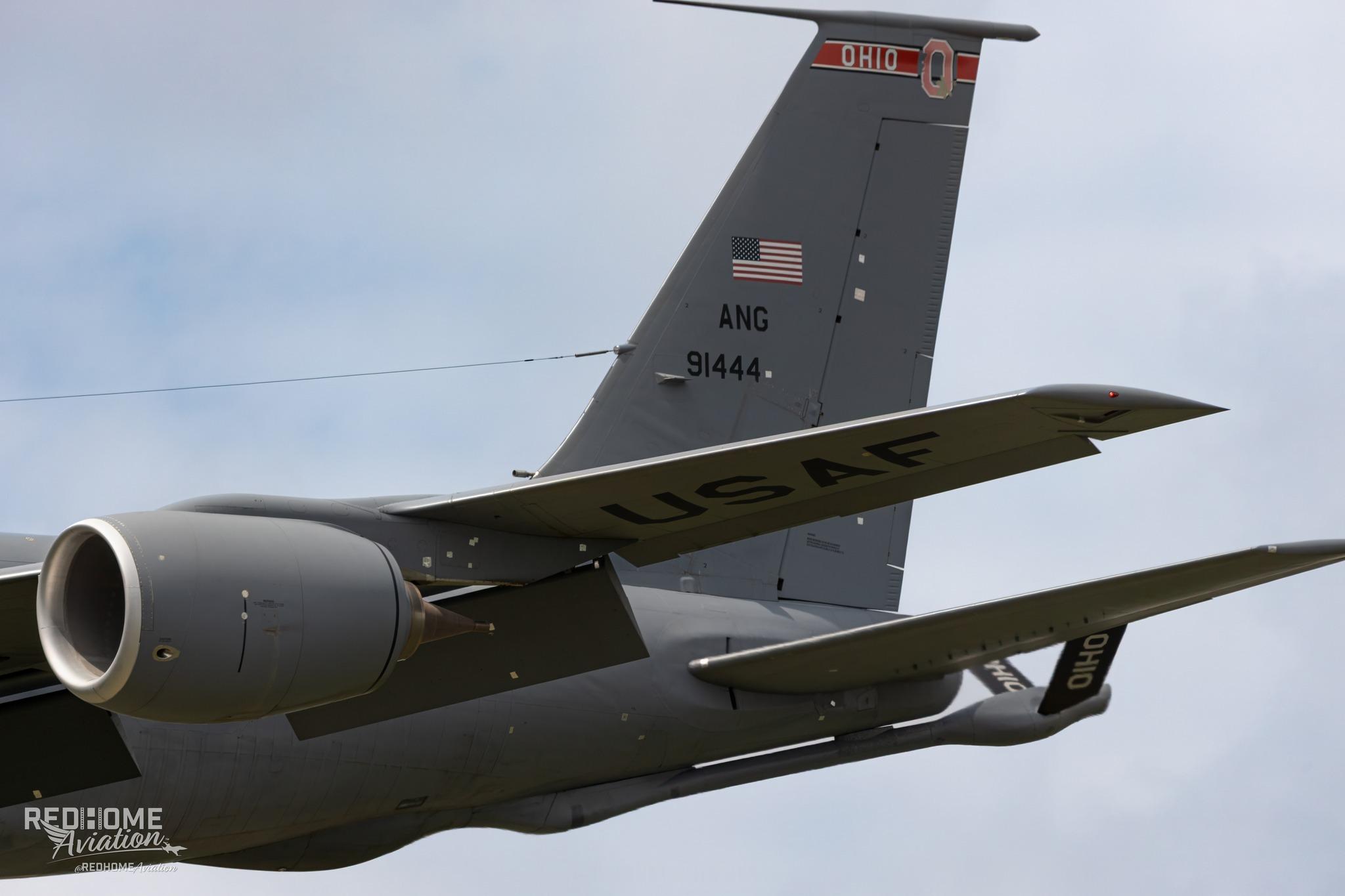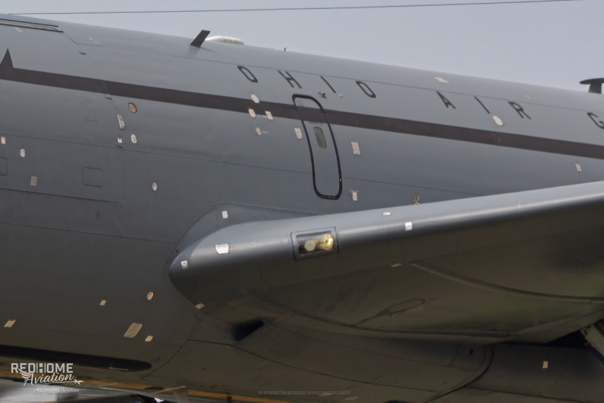 美伊以冲突 2026年4月14日下午,美国空军国民警卫队第121空中加油联队的KC-135R“同温层油船”空中加油机(编号59-1444),在美国俄克拉荷马州廷克空军基地18号跑道降落。这架战机此前在2025年3月于沙特阿拉伯苏丹王子空军基地,遭伊朗袭击被弹片击中,机身布满临时快速修复痕迹。它从中东战区撤离,自英国米尔登霍尔皇家空军基地飞越大西洋,途经美国缅因州班戈空军基地后,抵达廷克基地。机身损伤处采用应急修复:结构性严重破损处,使用外部金属加固板/补丁搭配内部加强件临时修补;轻微表面、气动类损伤则使用俗称“快速胶带”的铝制胶带粘贴,后续将进行结构性维修。2026年2月28日,美国发起“史诗狂怒”行动、以色列同步发动“咆哮雄狮”行动后,伊朗军方展开反击,于2025年3月14日、27日两次袭击沙特苏丹王子空军基地停机区。此次袭击除摧毁1架E-3“望楼”预警机外,还造成多架停场的KC-135加油机受损。