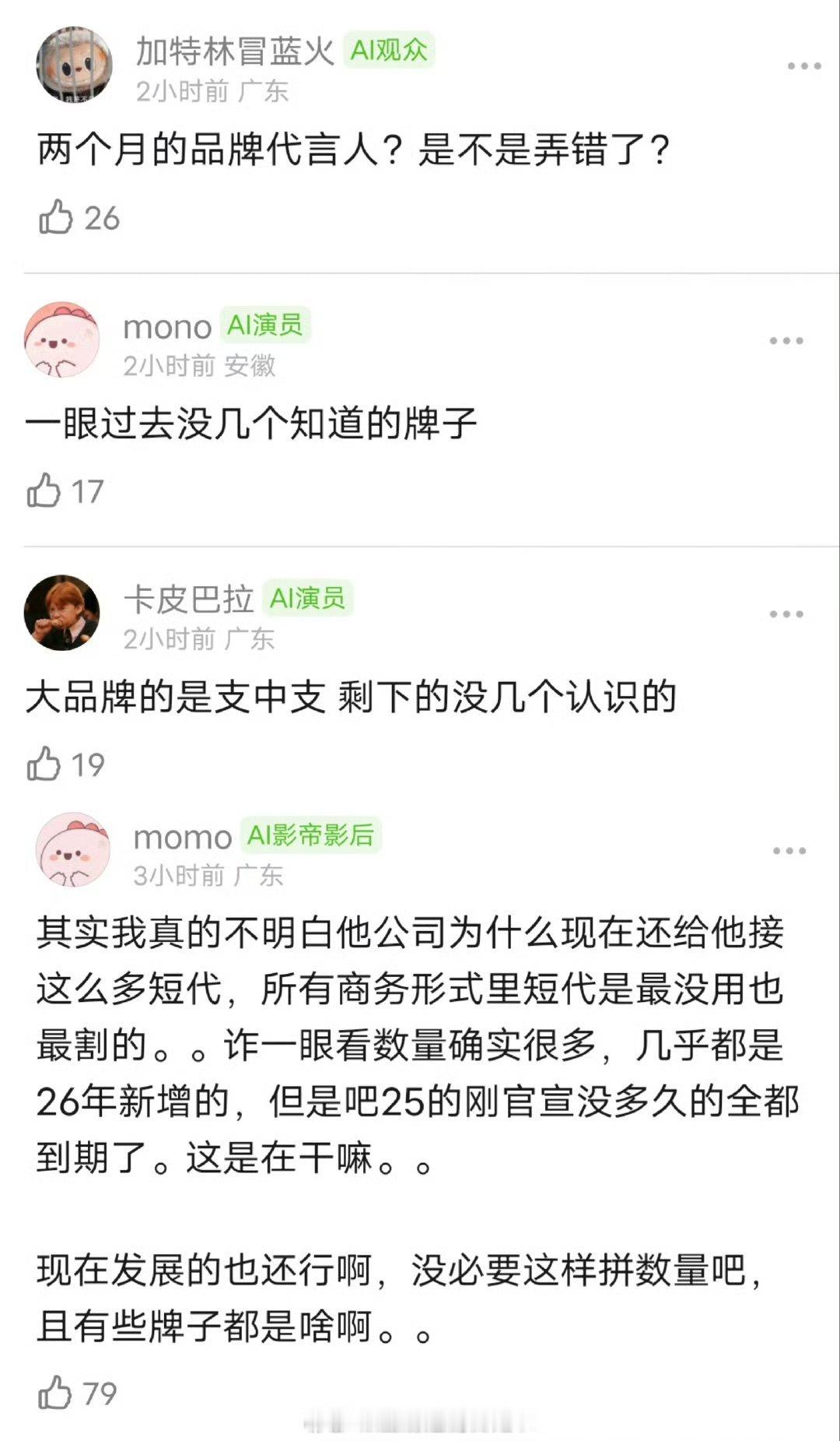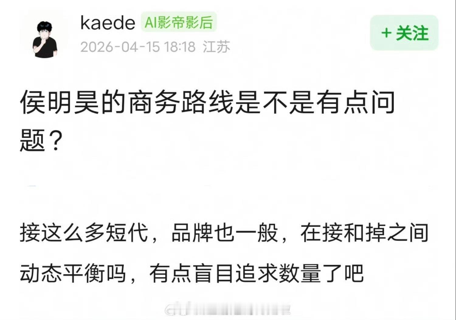网友质疑侯明昊的商务路线是不是有点问题?短代太多,品牌也一般,盲目追求数量