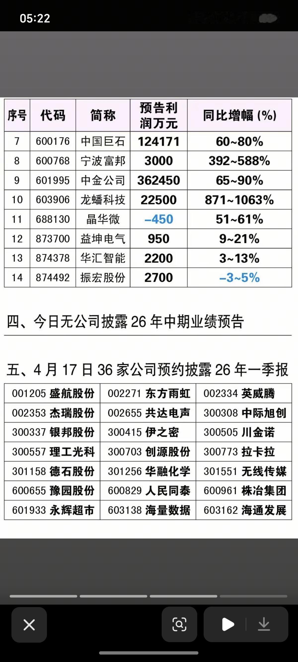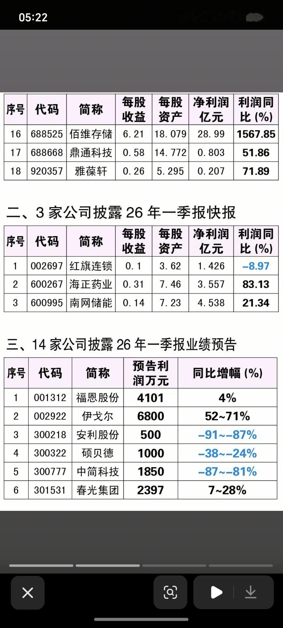 4.16周四 最新:26年一季度业绩速递! 18家公司披露26年一季报 14