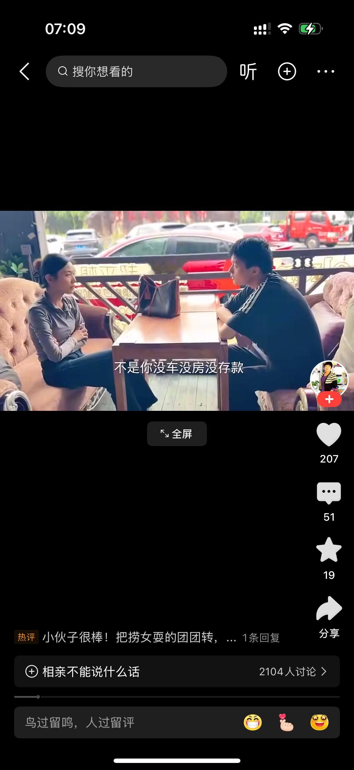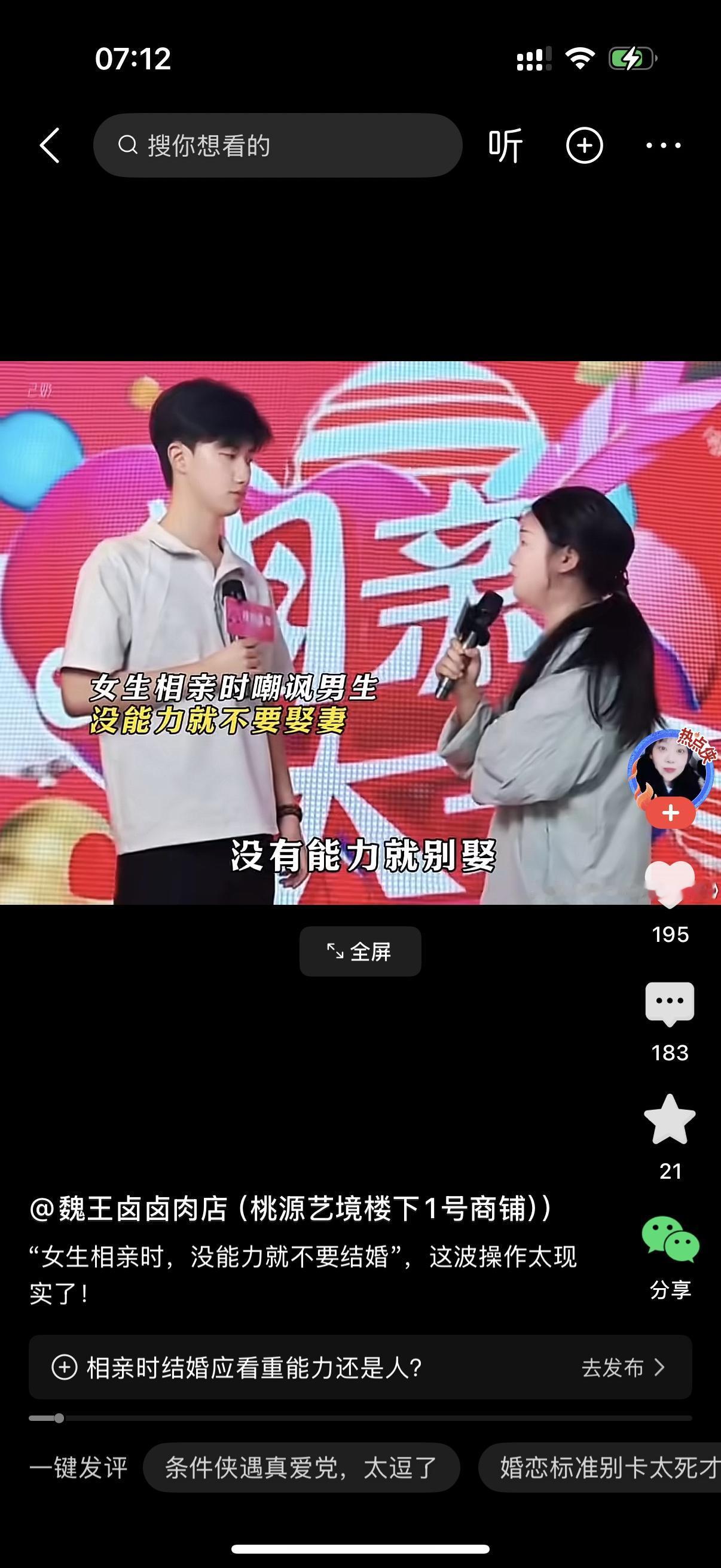 男子和女人相亲。女人刚坐下来就开门见山地问,你有房吗?男子回答没有。女人又问,你有车吗?男子还是回答,没有。女子再问,你有存款吗?男子还是说没有。女人怒了,你什么都没有,相什么亲?空手套白狼吗?男子说我有颗真心。女子呸的一声,说真心值几个钱?没有1000万存款,连跟我说话的资格都没有。男子愤而离席,你这个拜金女。女子脸都绿了。