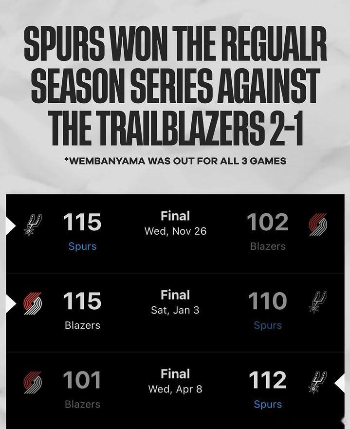 马刺马刺 季后赛首轮对阵开拓者,常规赛交手马刺2比1。开拓者主教练蒂亚戈·斯普利