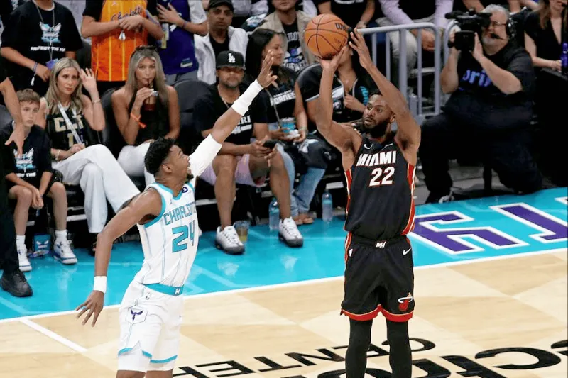兄弟们,在对阵黄蜂的附加赛里,维金斯打出了近期最火热的发挥。出战42分钟,18投10中飙进4记三分,砍下27分7篮板3助攻。末节更是连续投进两记关键三分,几乎凭一己之力把比赛拖进加时。然后呢?加时赛里,维金斯彻底沦为工具人。明明手感滚烫,却没有一次出手,球都摸不到。这不只是这一场的写照,而是维金斯整个赛季在热火的缩影。