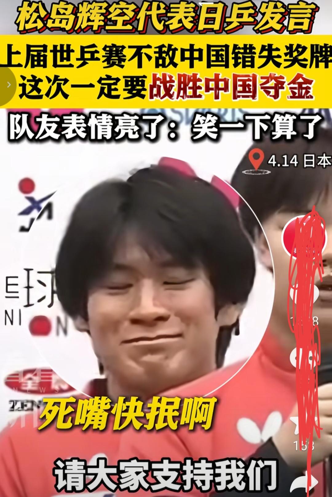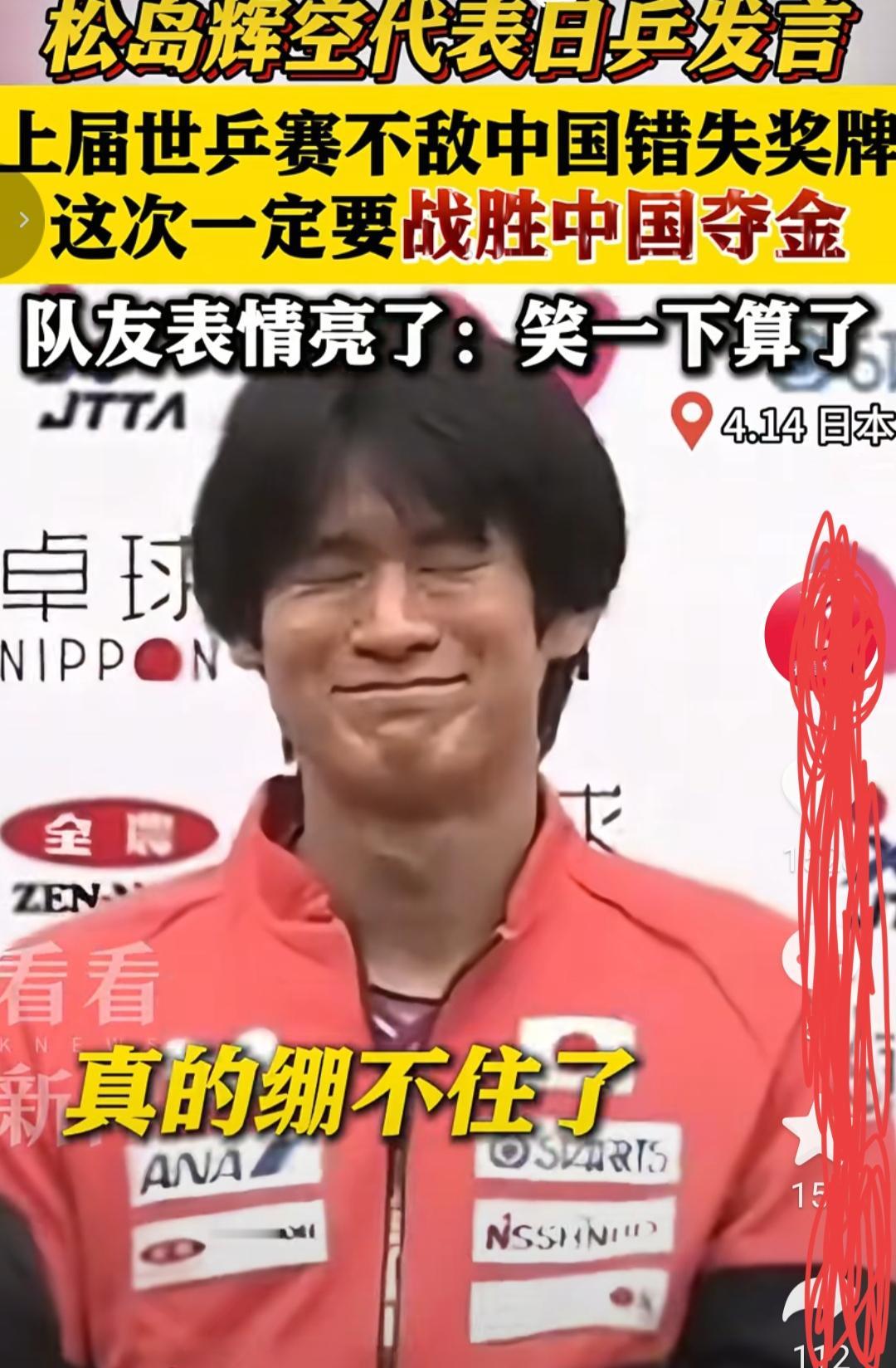 日本乒球队,召开伦敦世乒团体赛的誓师动员大会,松岛辉空发言说,2024年的世乒团体赛,日本队遗憾地败给了中国队,这次伦敦世乒团体赛,日本队有信心,有能力击败中国这支老弱病残的所谓强队,日本队员听后嘲笑,可我们的国人和众球迷怎么笑不起来呢!