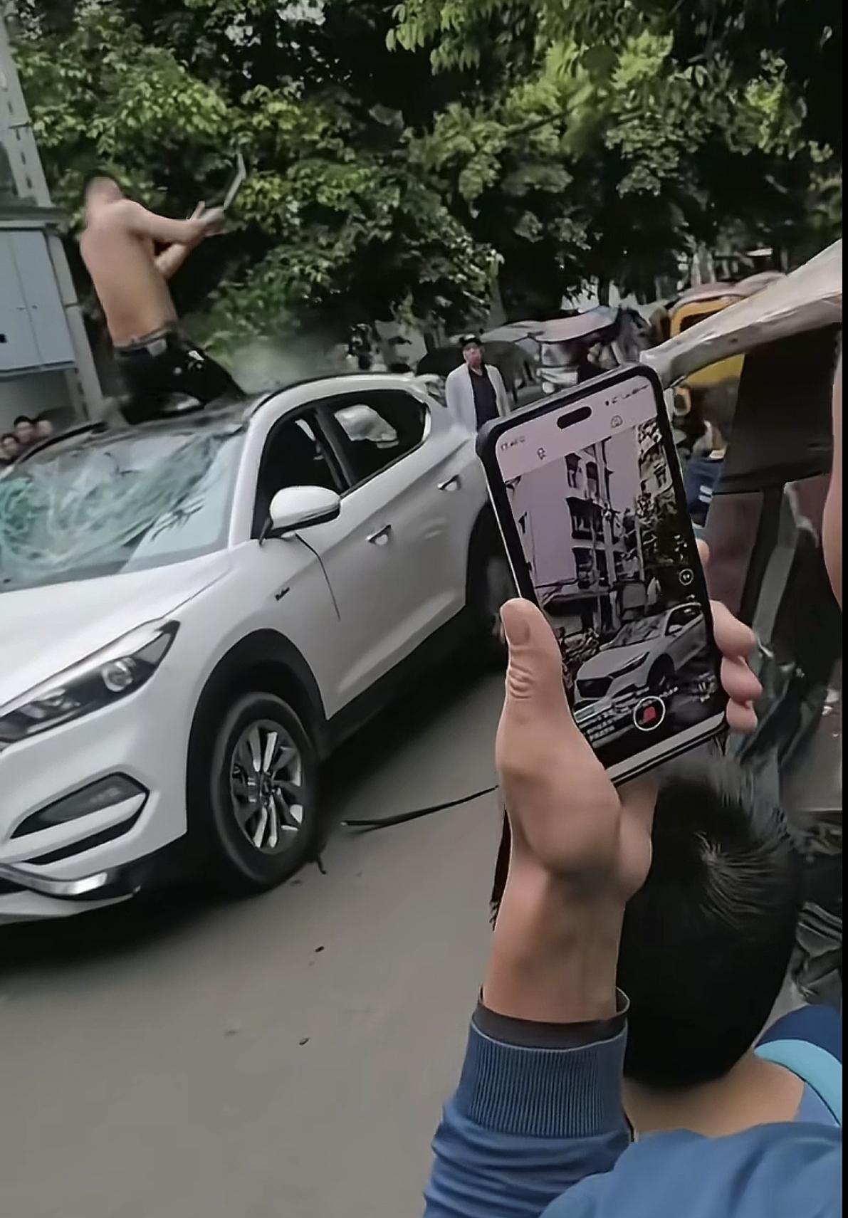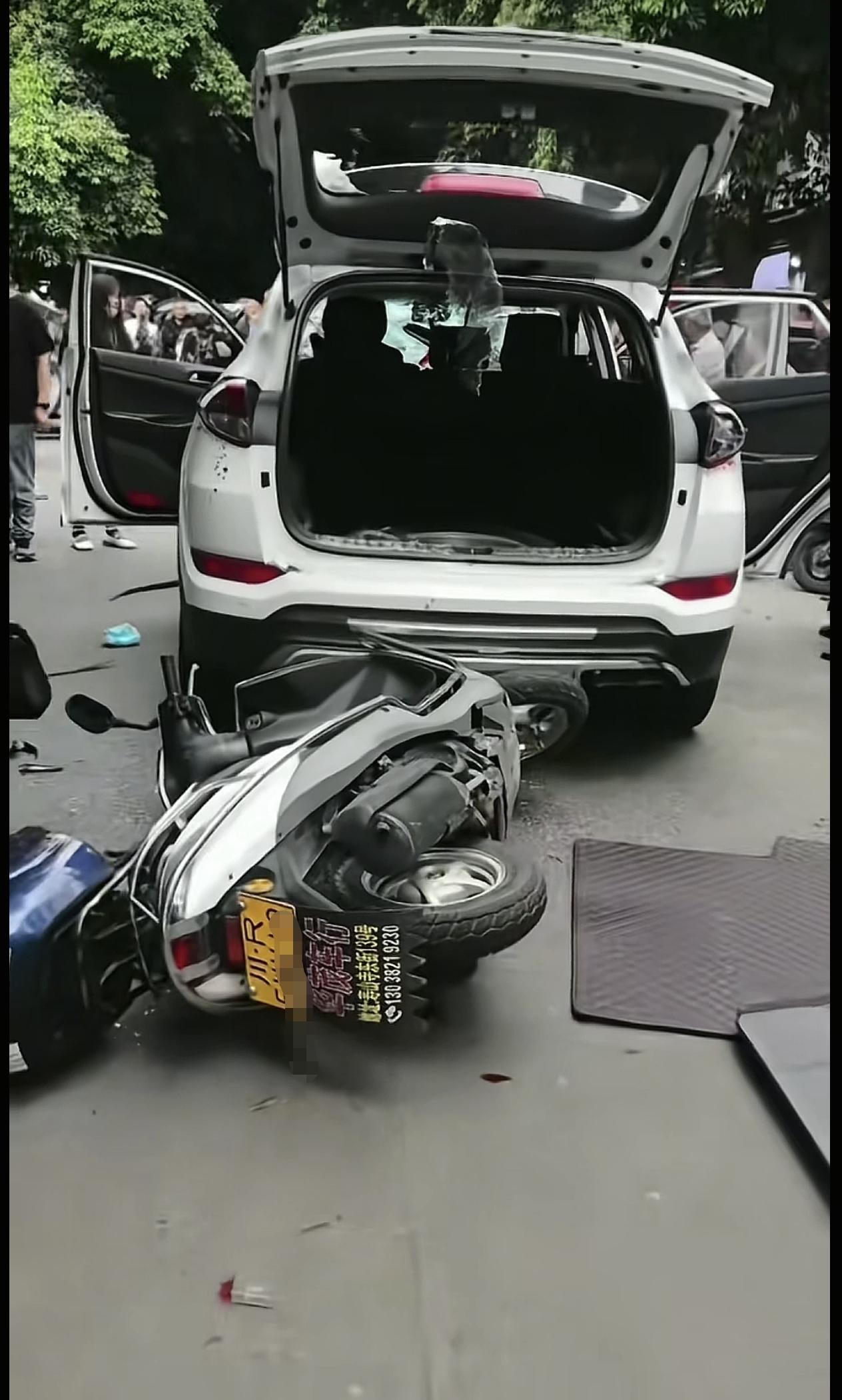 近日,四川南充。一电动摩托车车主与一辆白色小轿车车主发生行车纠纷,电摩车主当街怒
