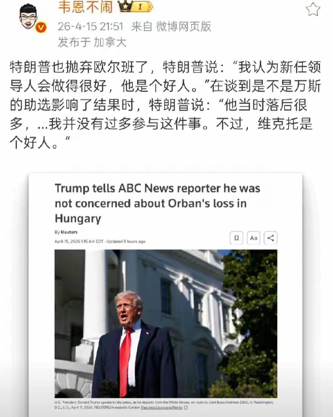 特朗普对欧尔班的态度很实用主义,棋子没用了,便成弃子。