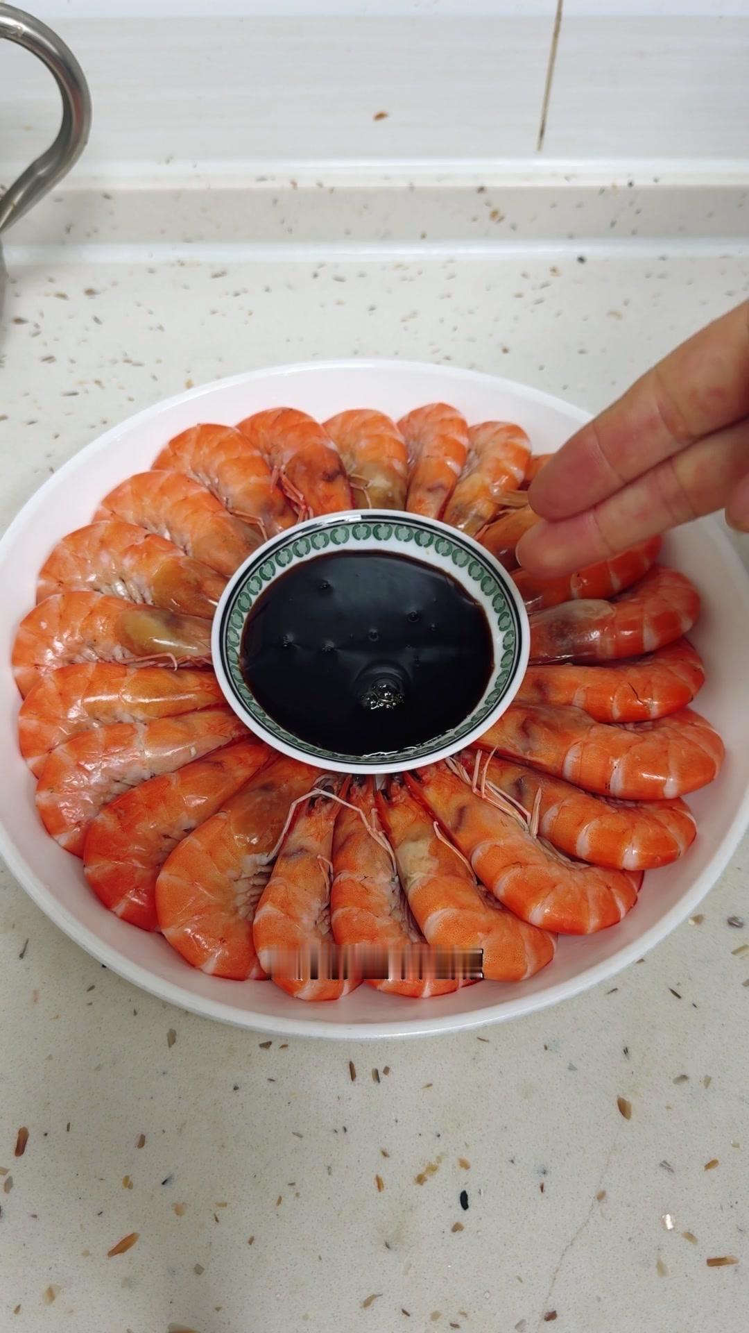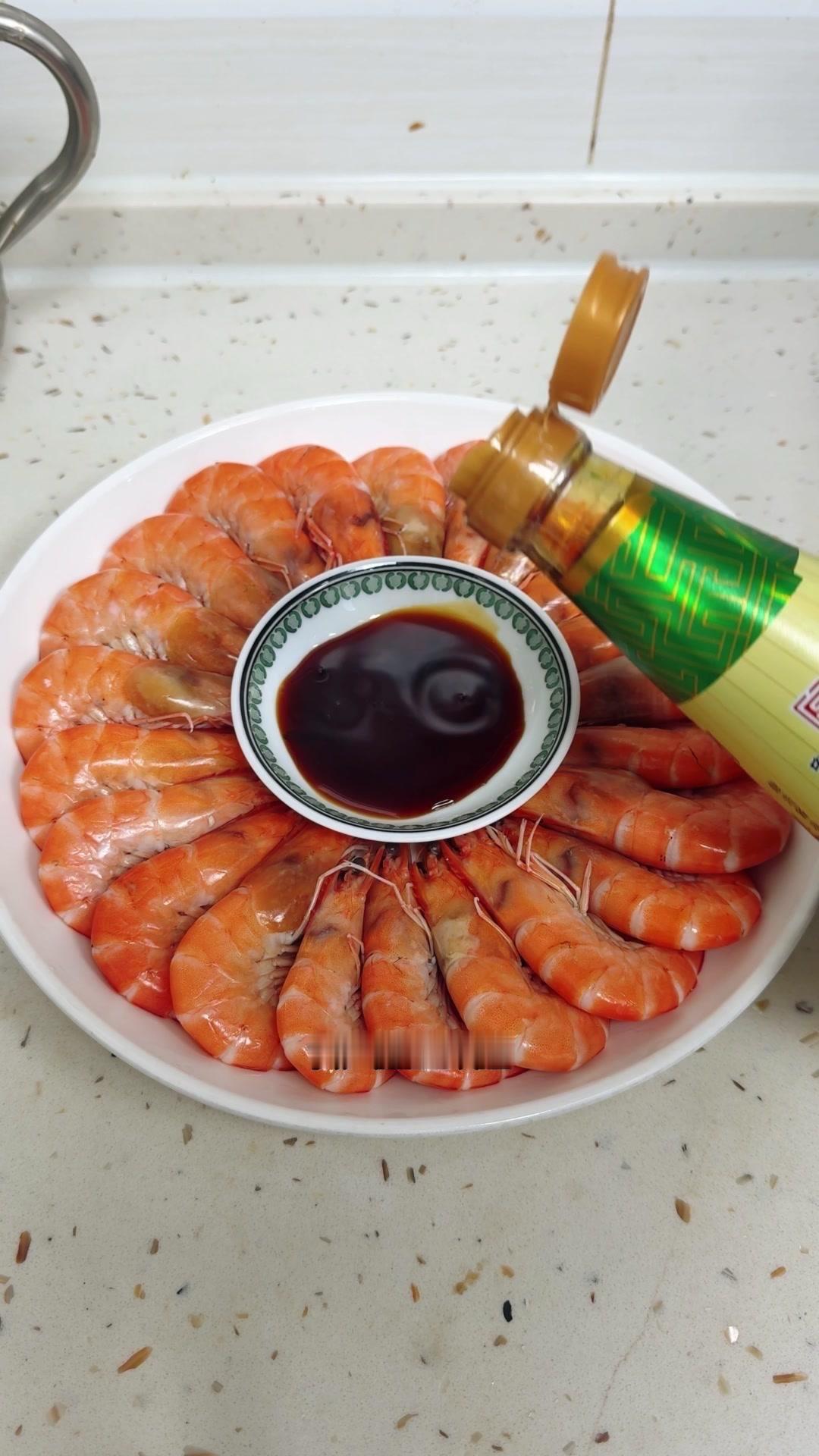 捞出整齐摆入盆中,调个味碟,蒸鱼豉油加生抽和少许香醋,喜欢辣的可以加蒜末小米辣。这样做出的白灼虾,壳红透亮,虾肉鲜甜,年夜饭上桌超有面~