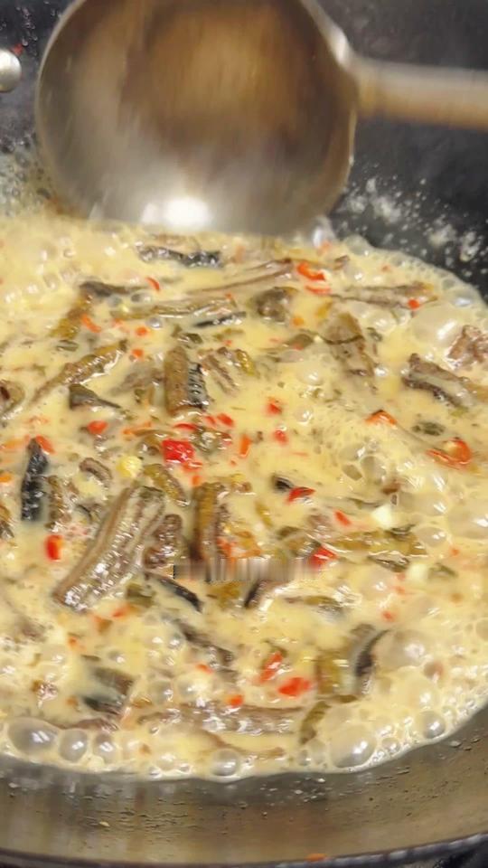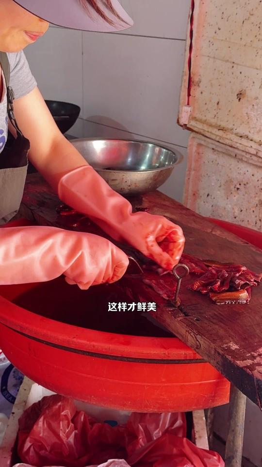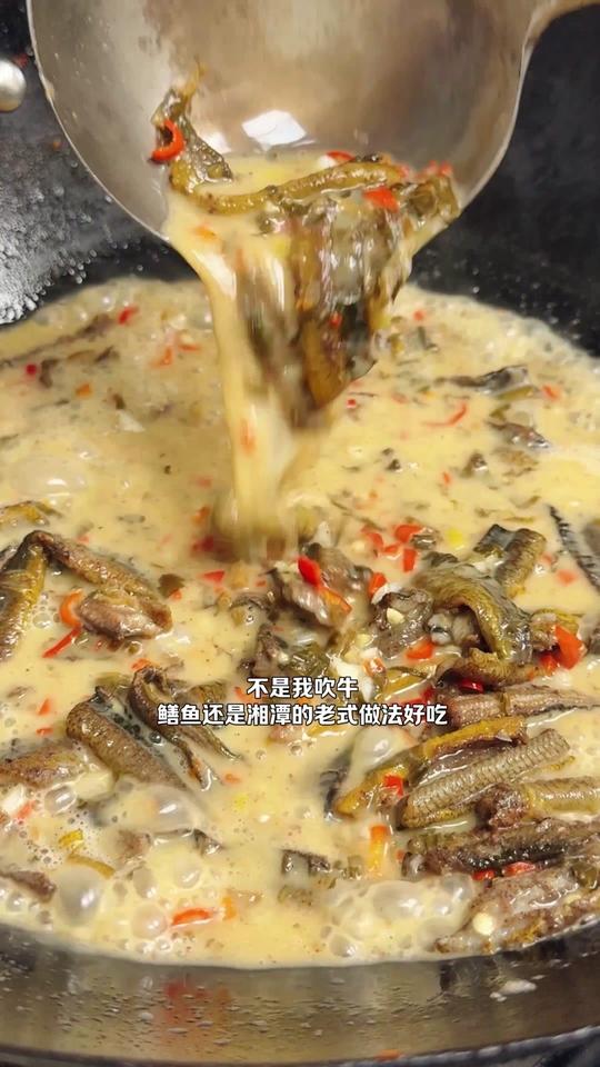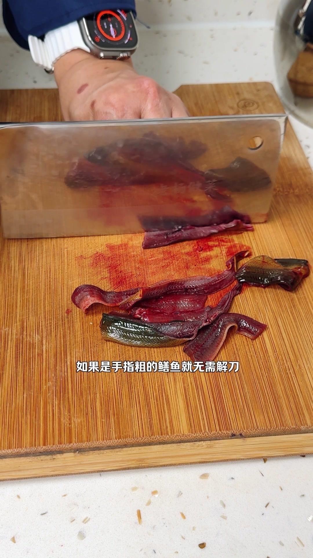土鳝鱼洗干净再去掉骨头,处理好以后不用洗,这样才鲜美。如果比较大的鳝鱼需要剪成段,手指粗的鳝鱼无需剪刀,一切准备就绪就可以起锅烧猪油。