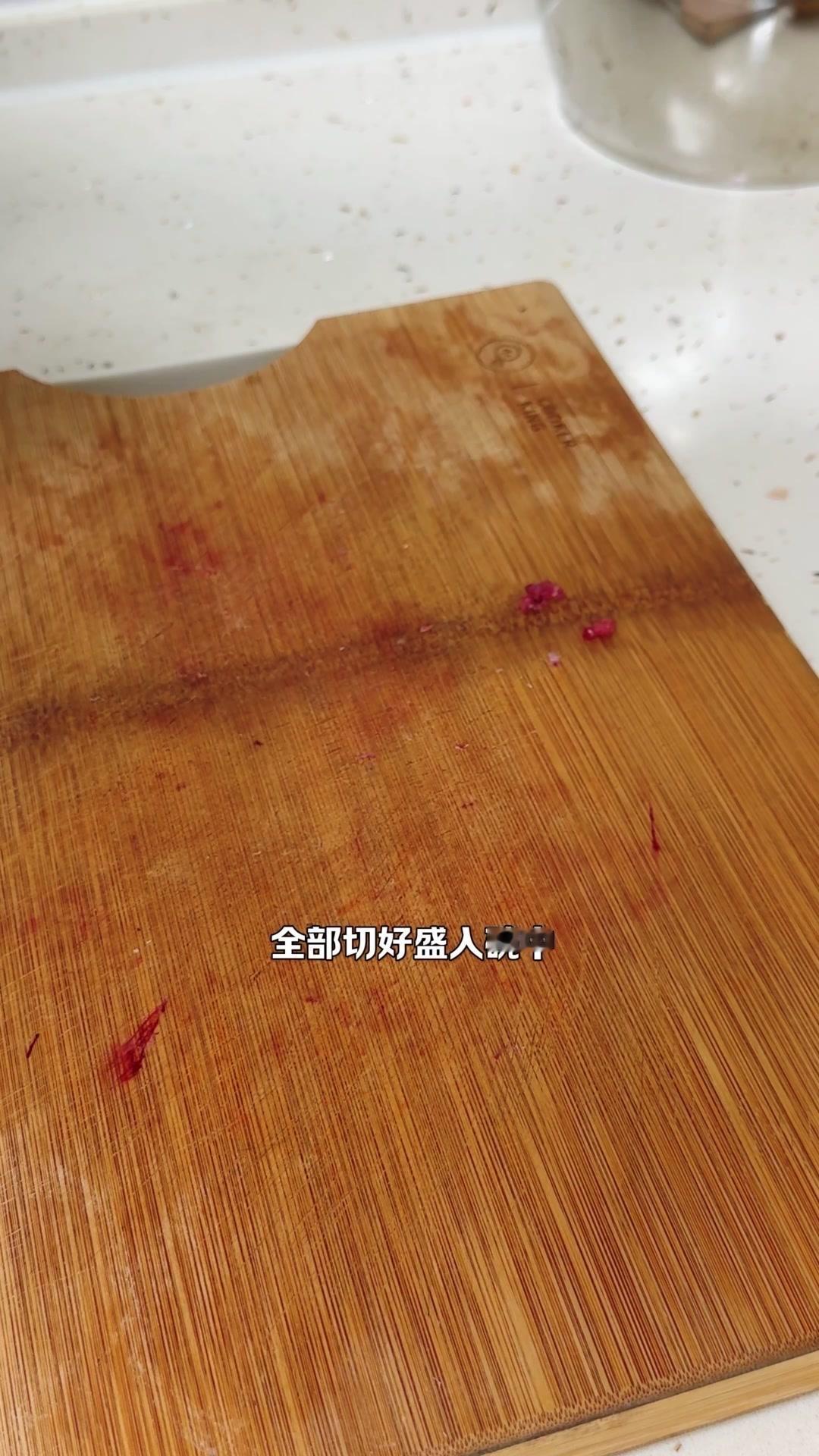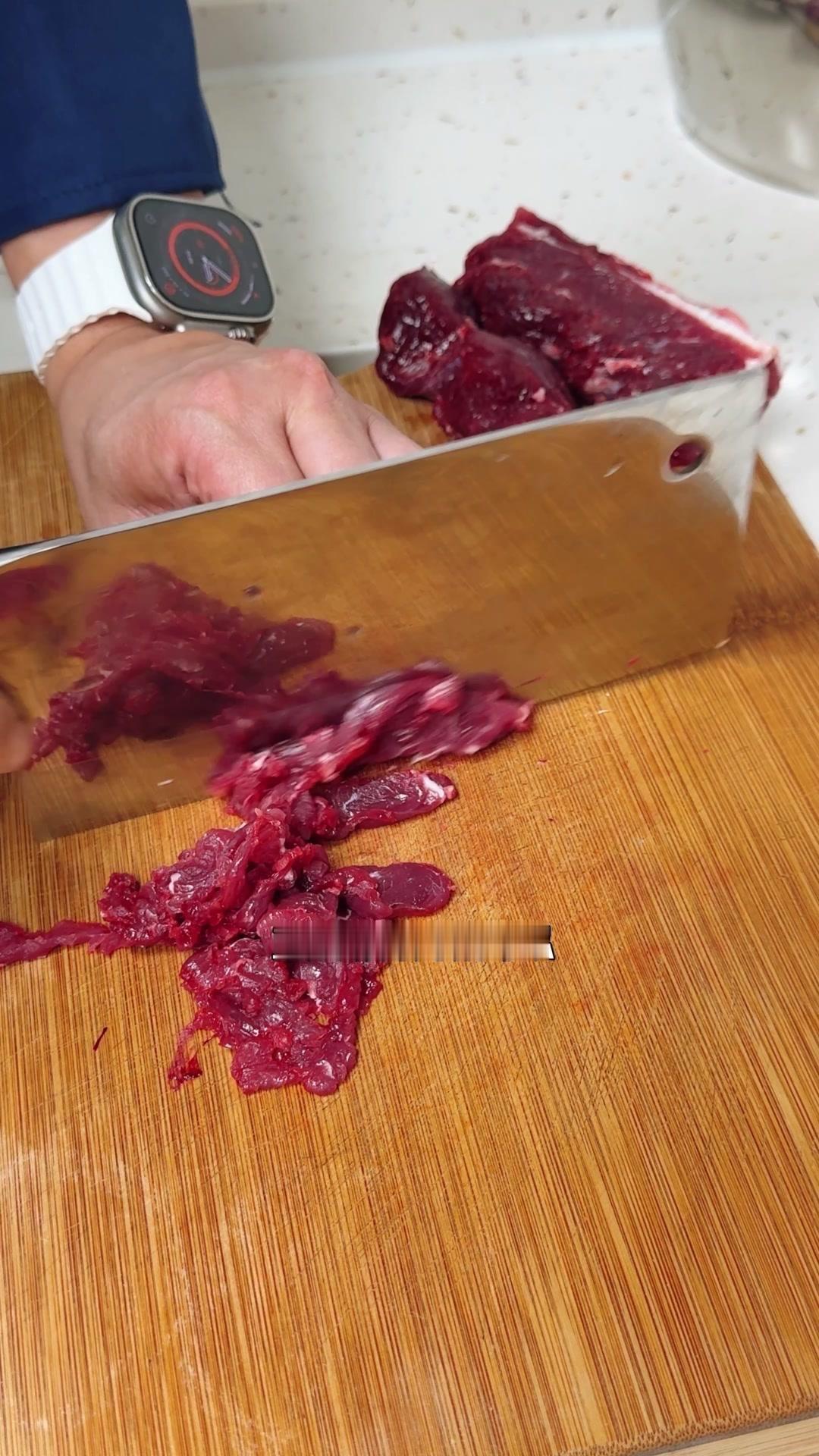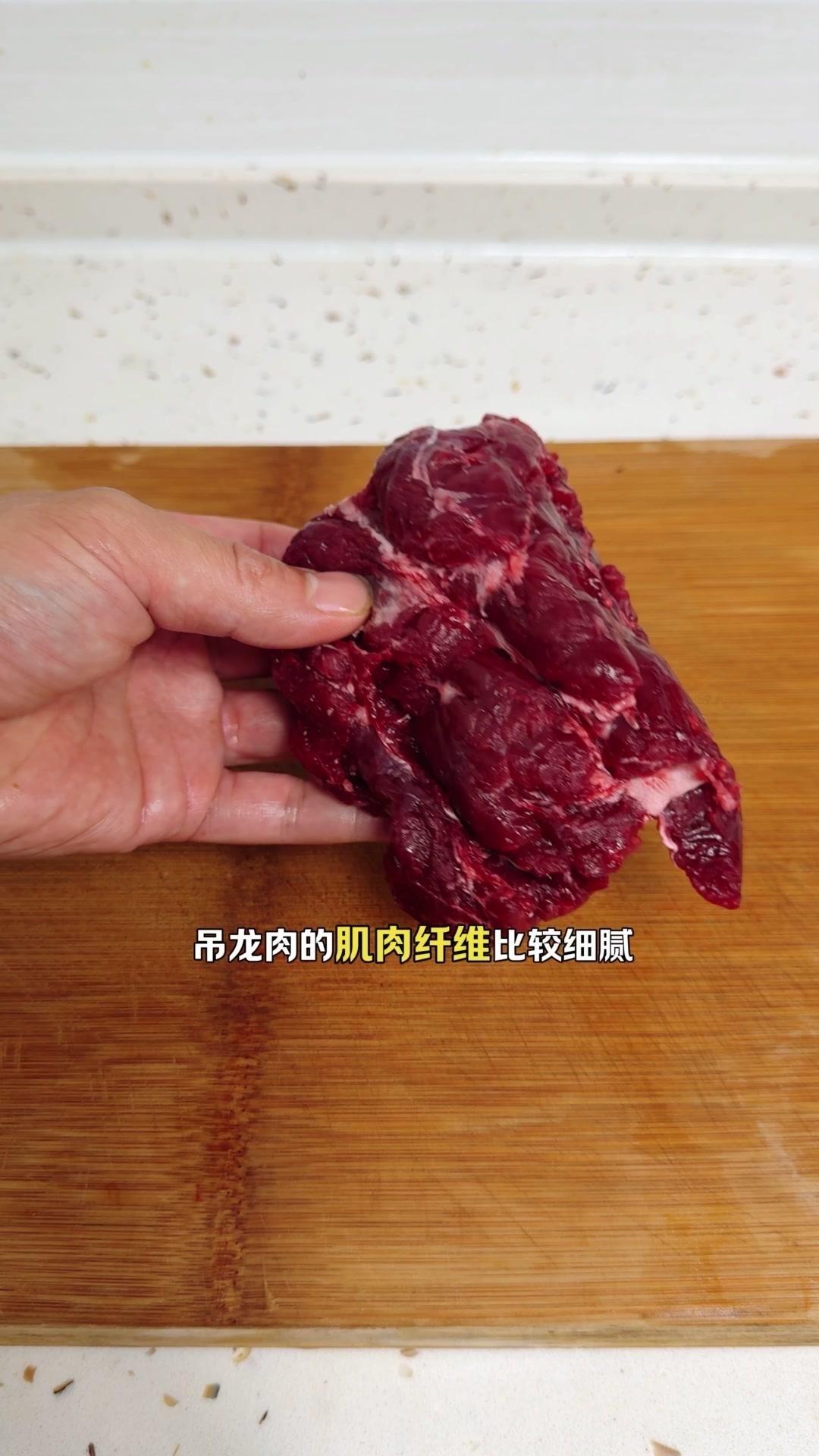 1️⃣选择吊龙肉:肌肉纤维比较细腻,有肥有瘦,炒出来才鲜嫩。直接切薄片,盛入碗中。