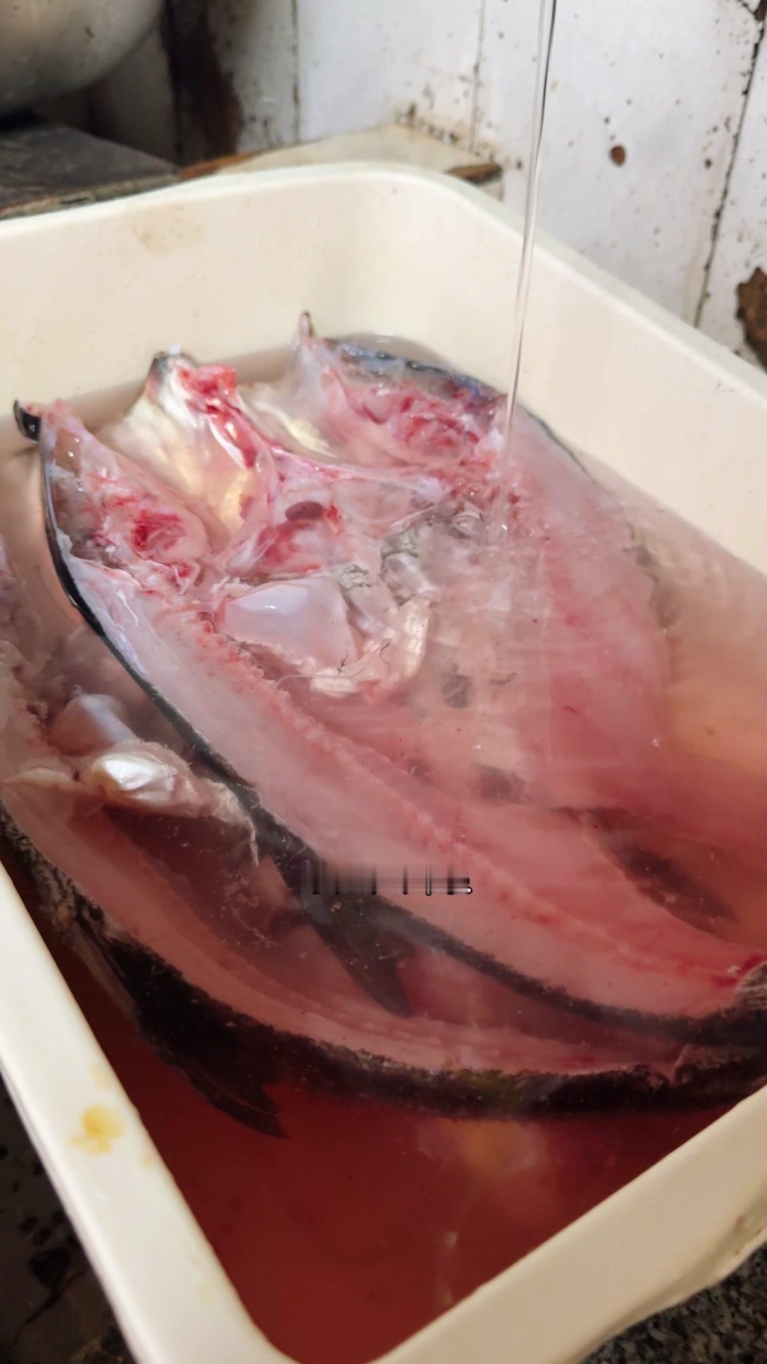 1️⃣准备3斤左右的雄鱼,处理好的雄鱼冲掉血水是秘诀之一。