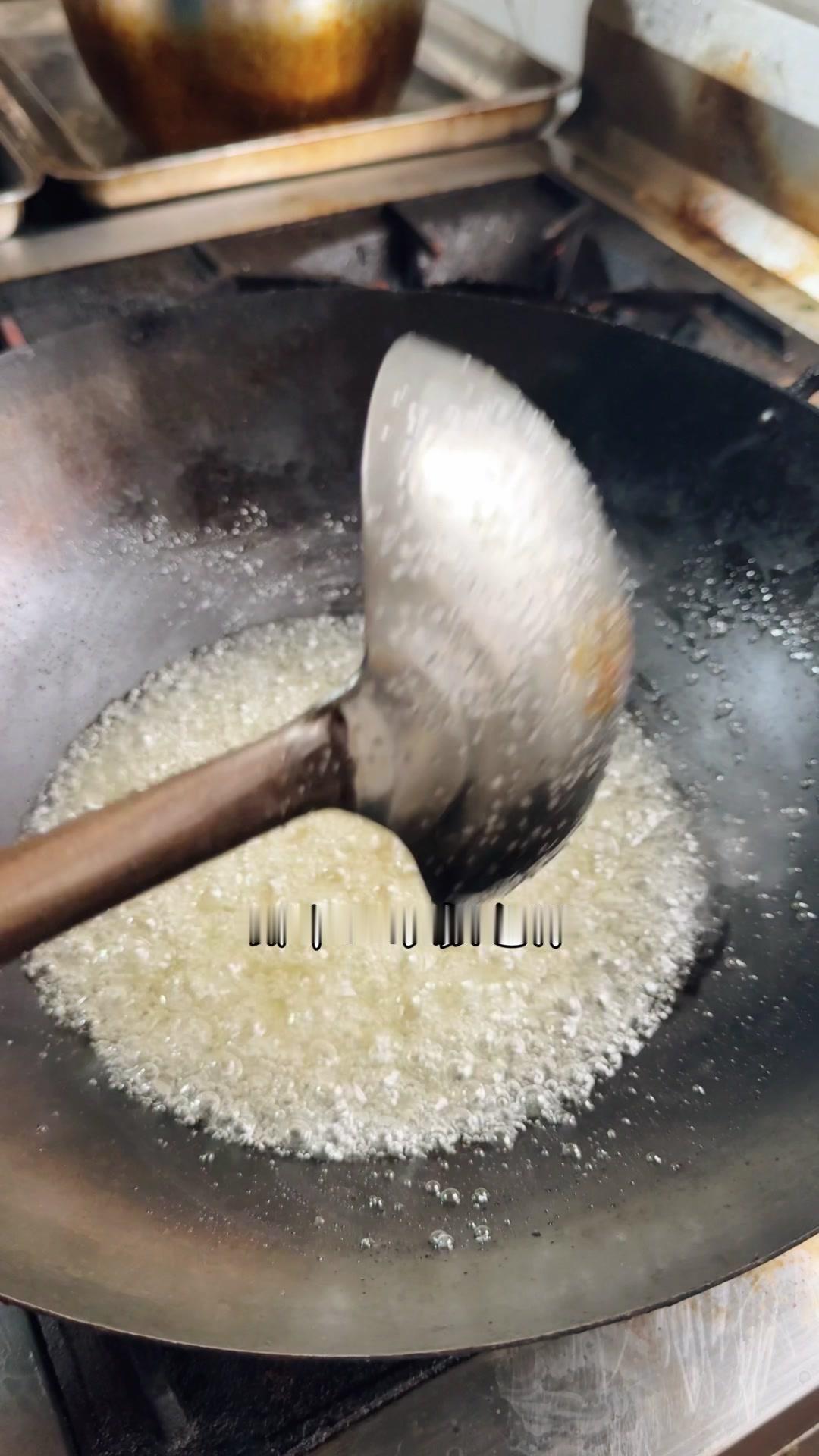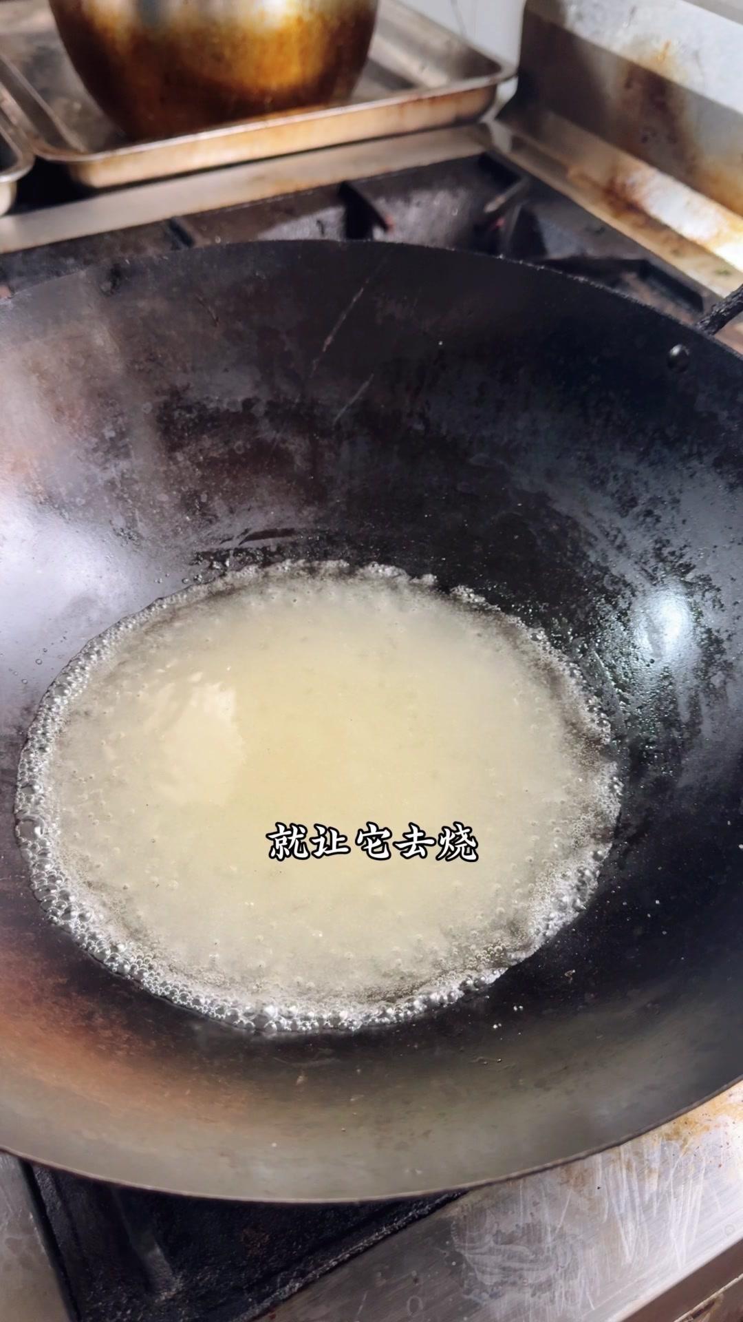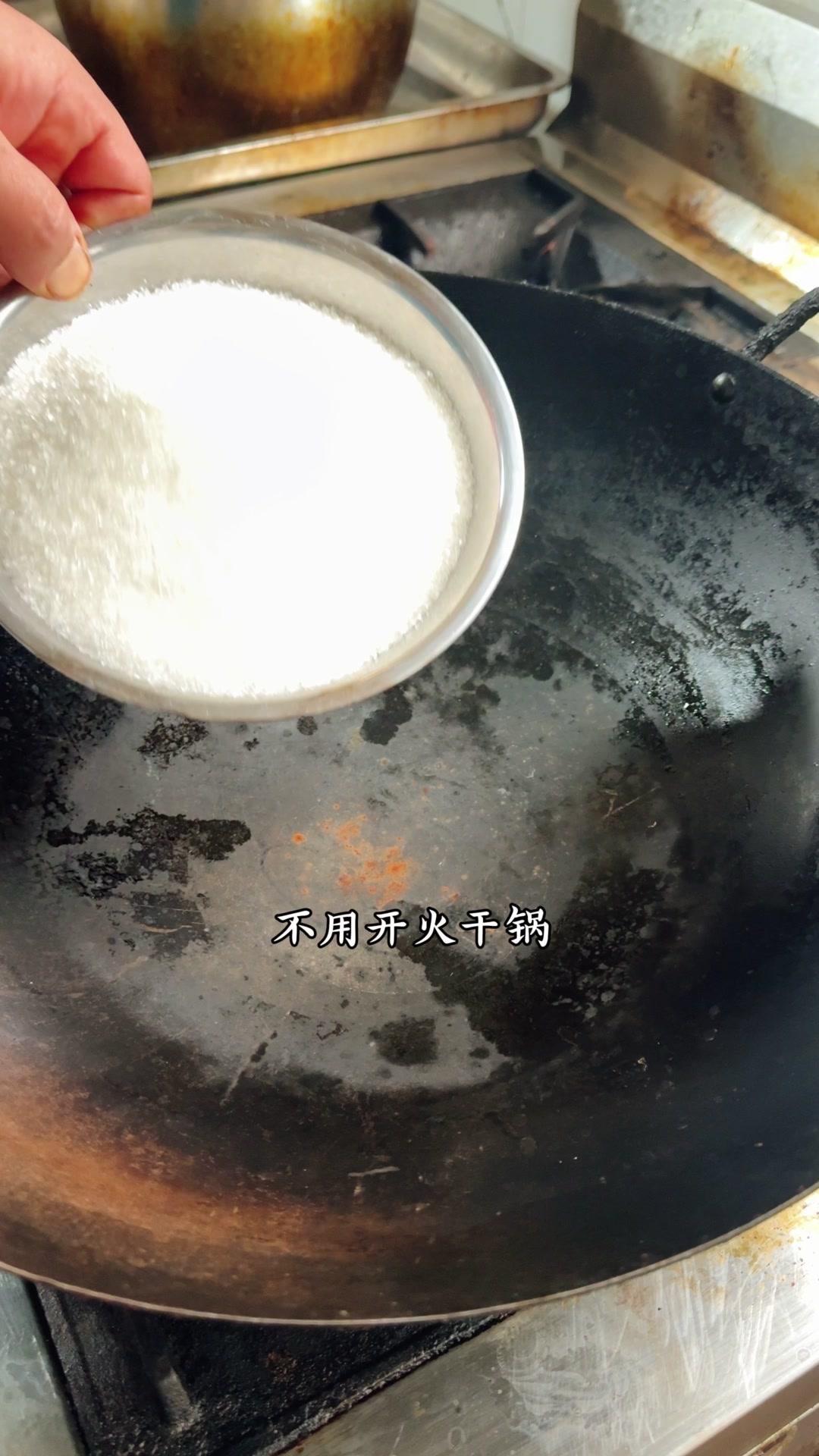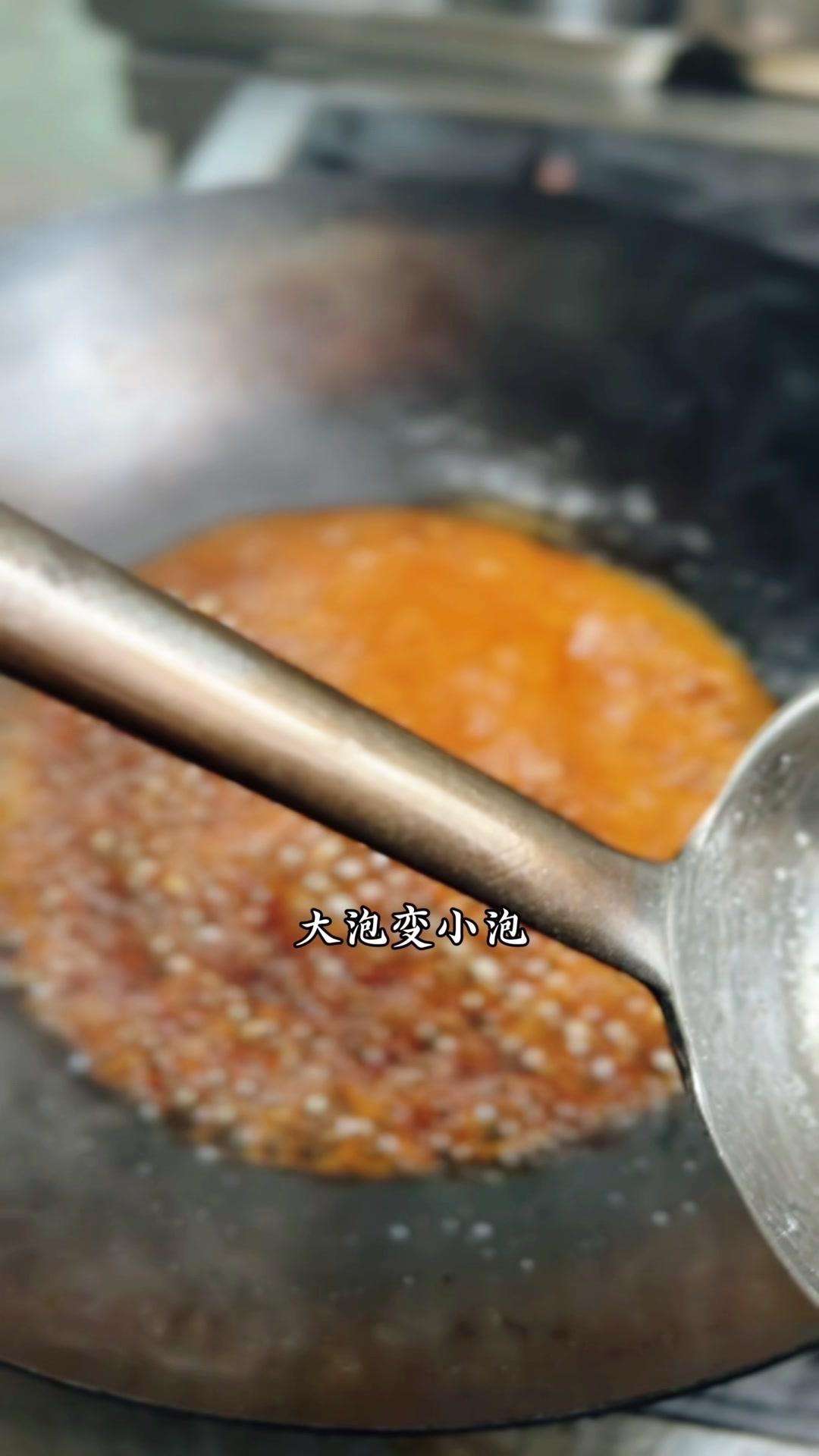 2️⃣炒糖色:干锅放白糖500g,加水湿透后开火慢熬,不用搅拌,颜色变褐色、大泡转小泡时加开水,糖色就炒好了。