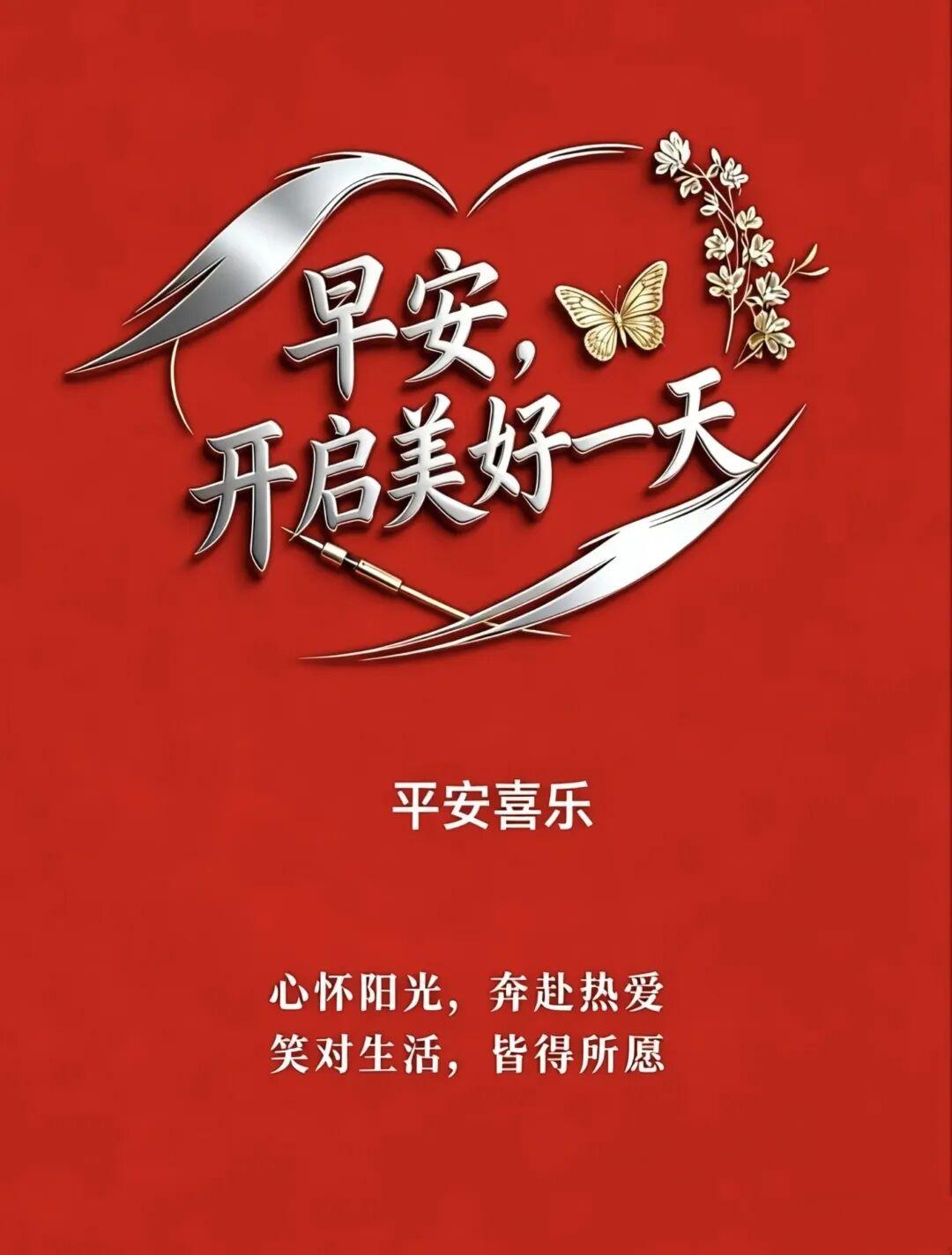 清晨送上一声问候,愿你抛开烦恼,满心喜乐。把吉祥揣在身边,把健康放在心上,岁岁平