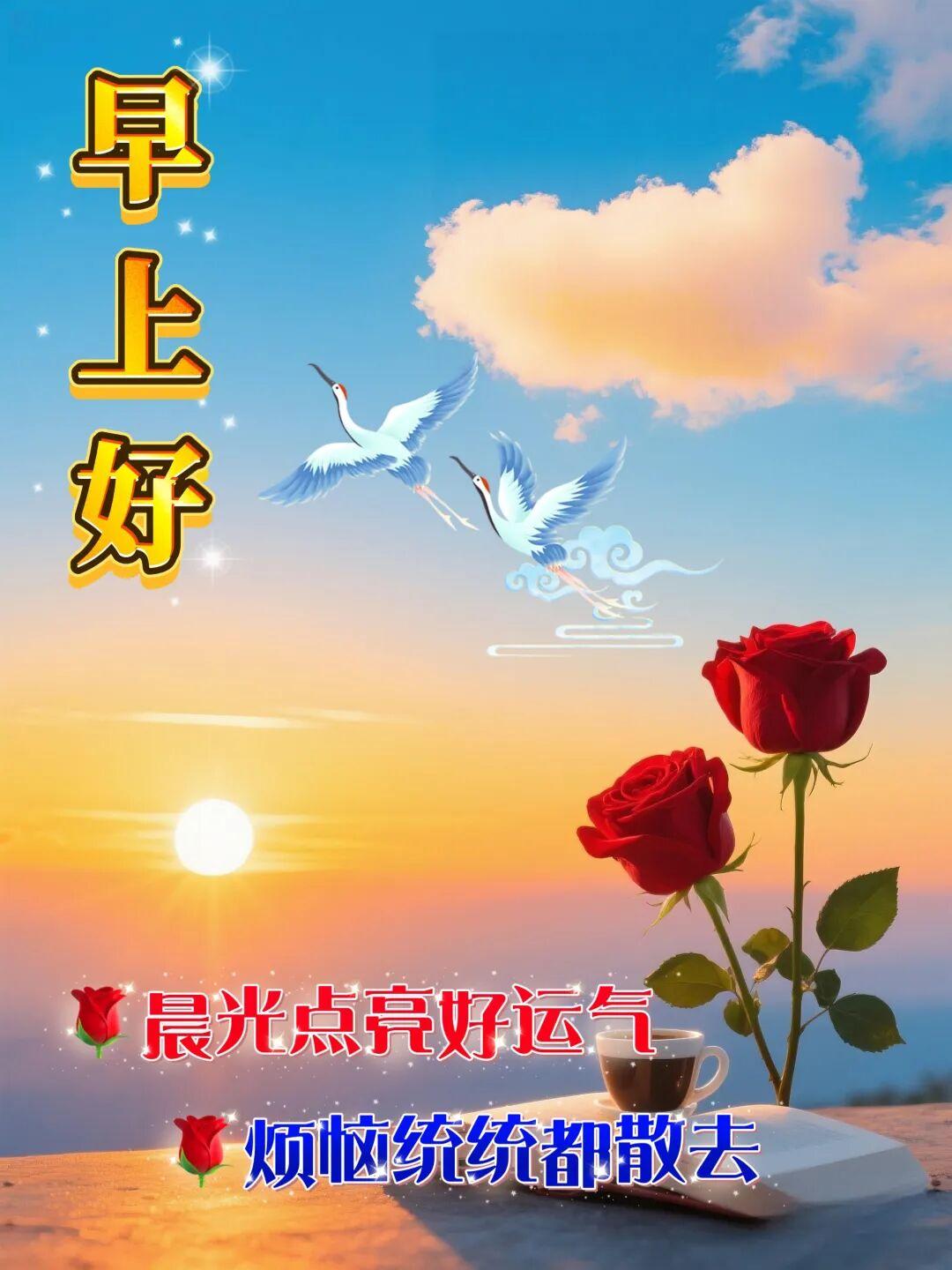 清晨送上一声问候,愿你抛开烦恼,满心喜乐。把吉祥揣在身边,把健康放在心上,岁岁平