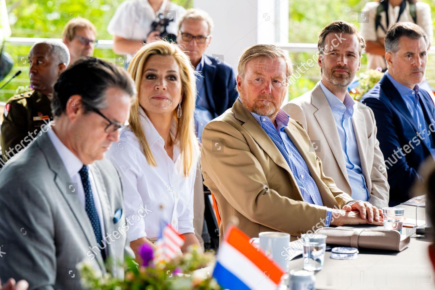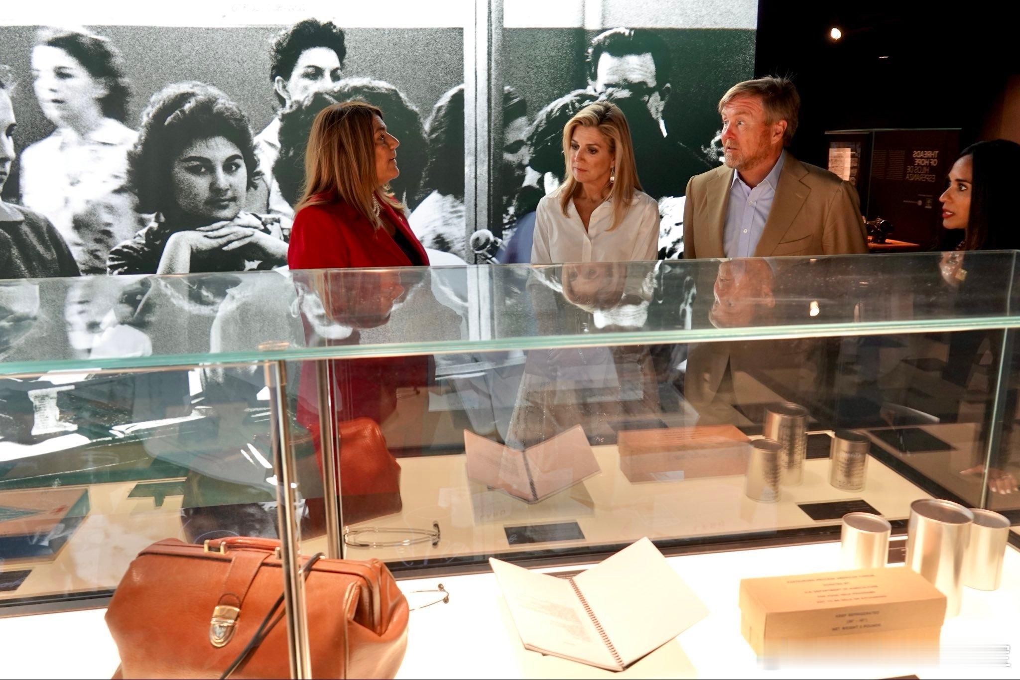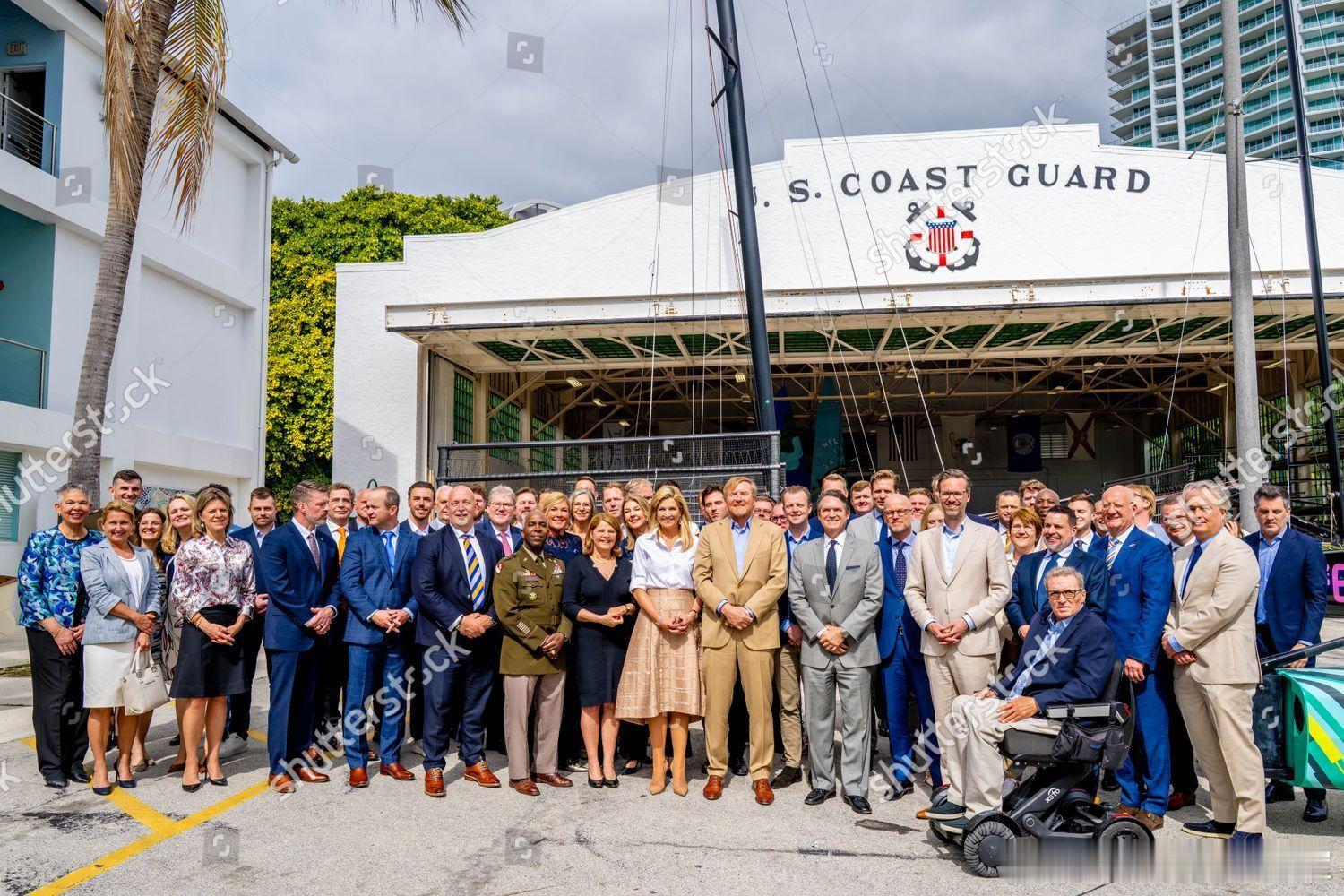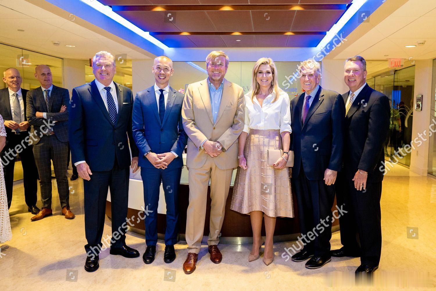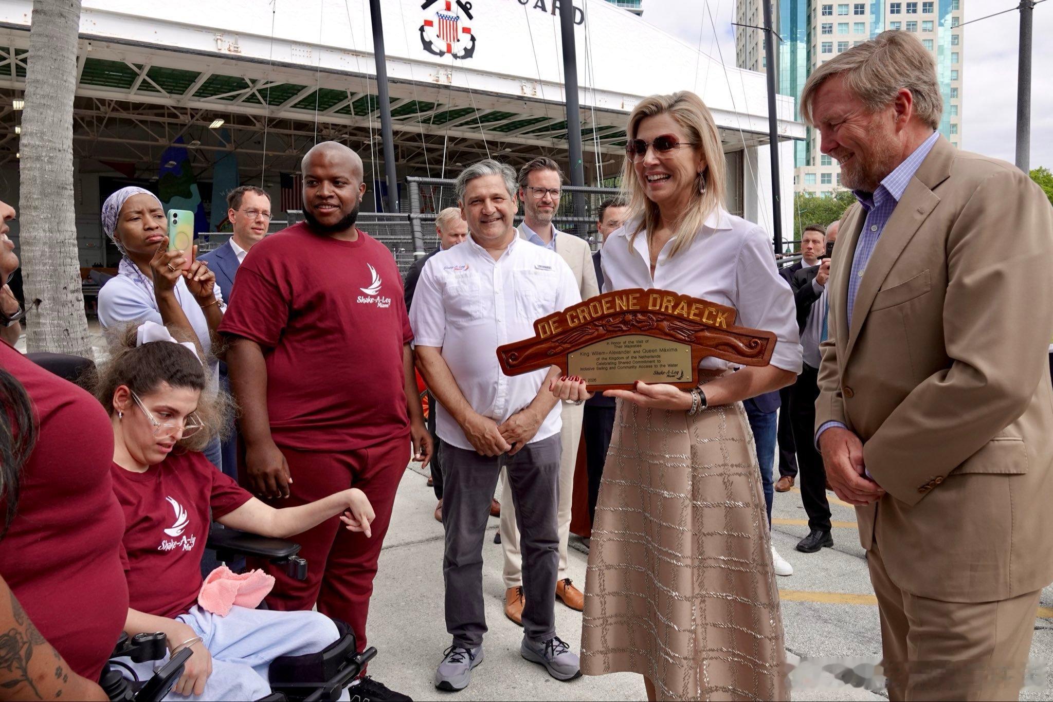 新闻 2026.4.15 荷兰国王夫妇工作访问美国Day 3,最后一天参加“海事行业高管”圆桌会议,分别参观Shake-a-Leg Marina水上运动中心和迈阿密心脏血管研究所,最后游览自由塔博物馆的“自由”主题展览和出席交流接待会,玛克西玛的旧裙装来自Natan,这次玛克西玛访美的旧套装选得不错。