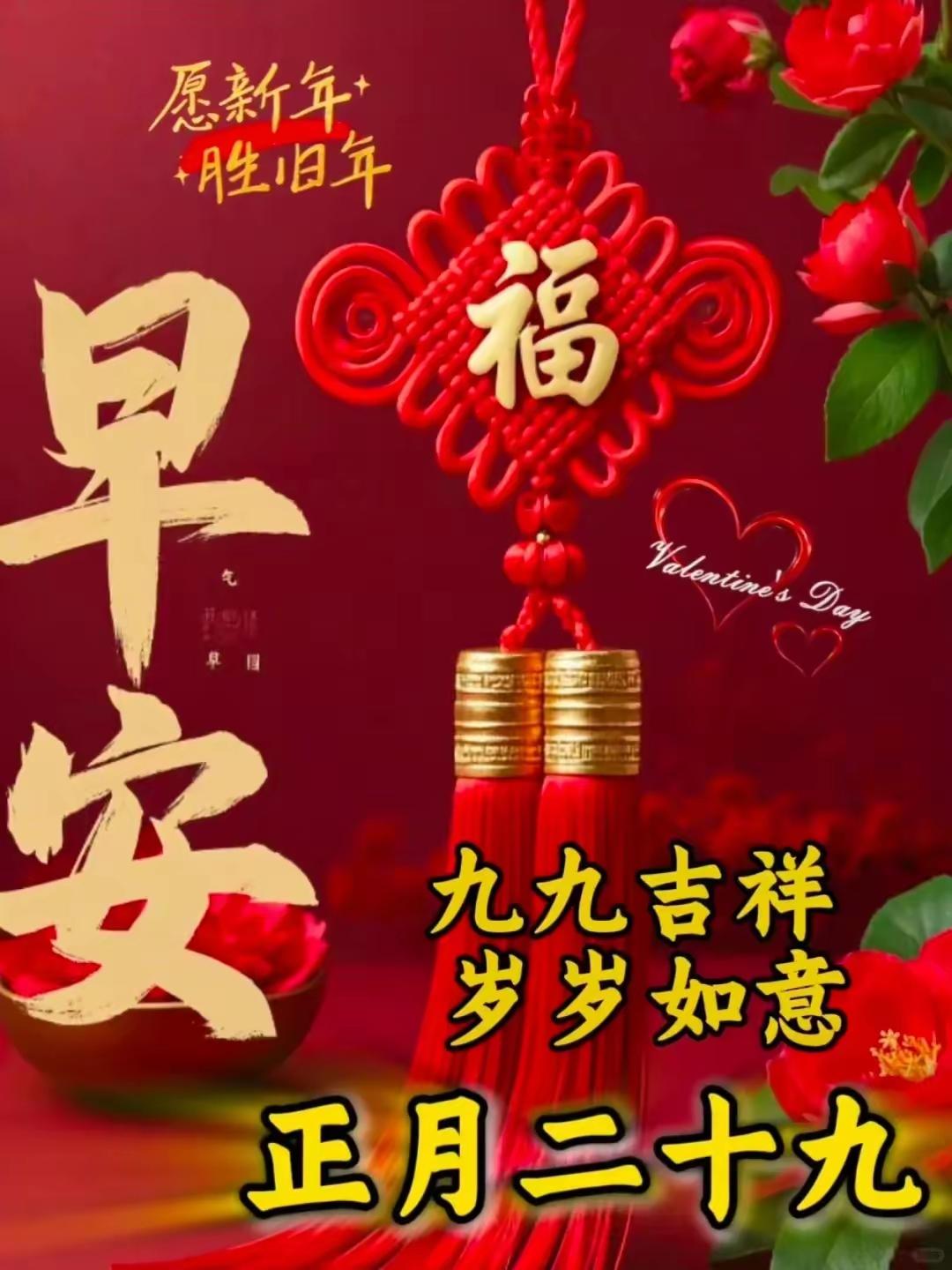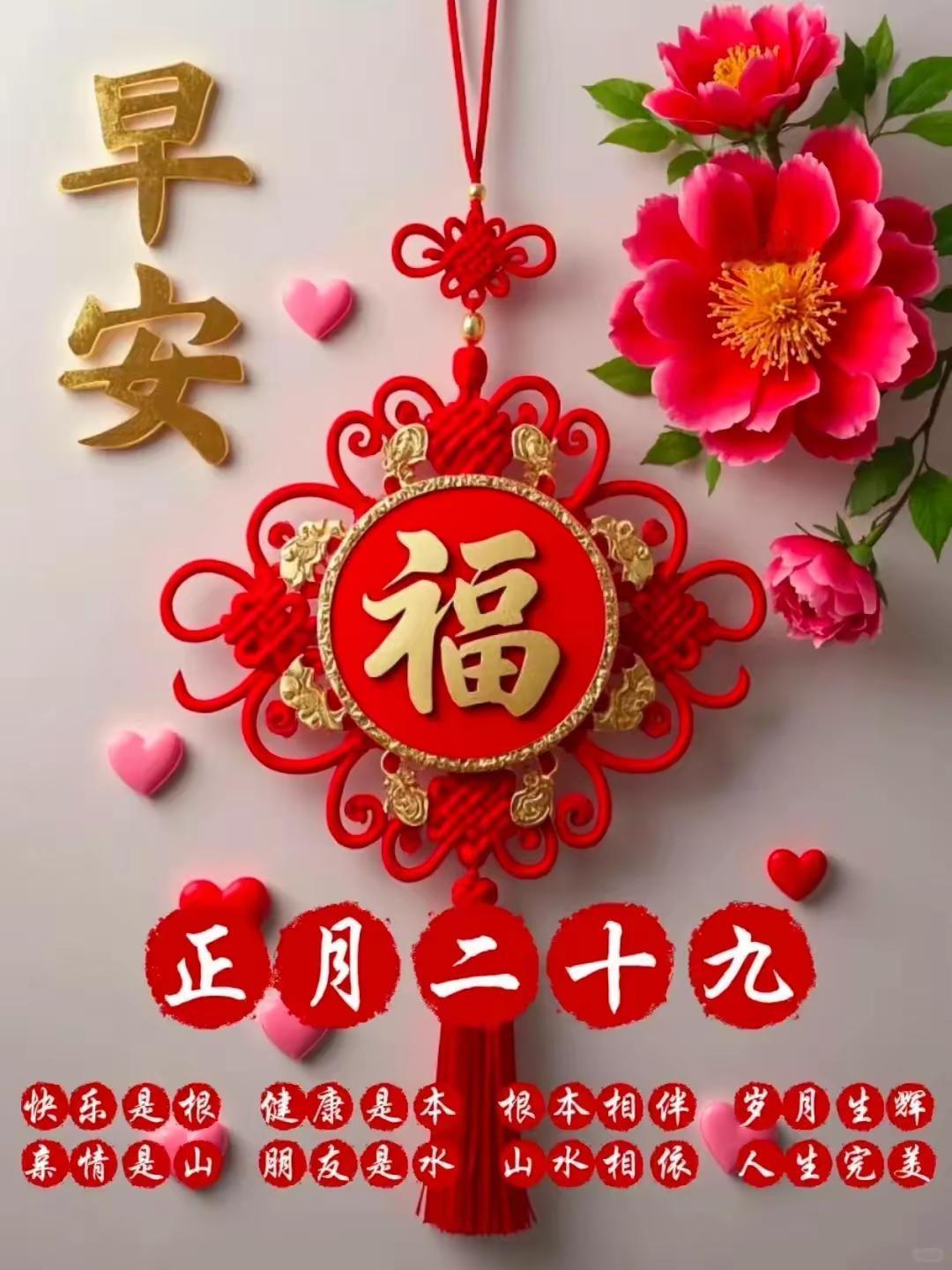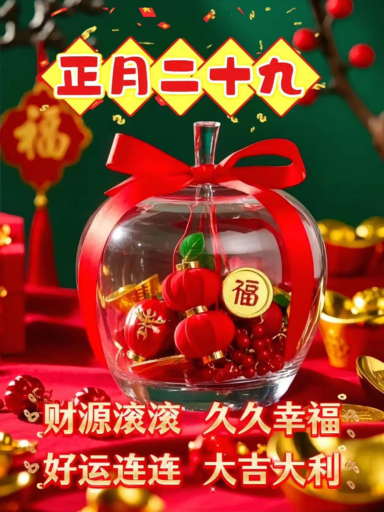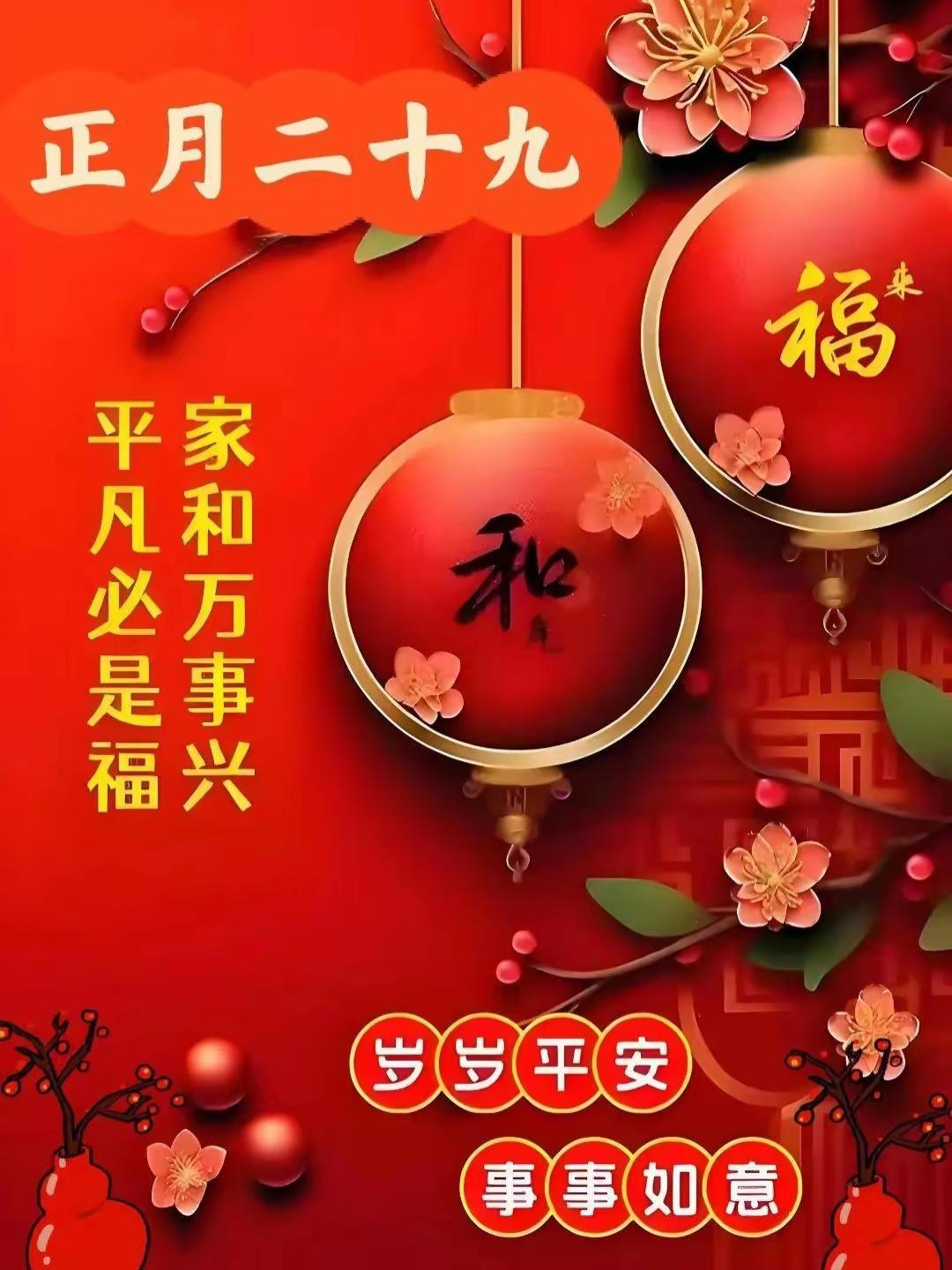 正月二十九,这日子感觉就是福气和好运的集结号!就像除夕时大家都盼着新一年国泰民安、福气满满,这正月二十九也带着满满的祝福味儿。