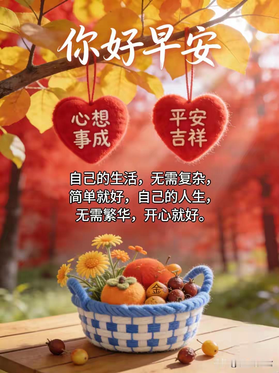 清晨送上一声问候,愿你抛开烦恼,满心喜乐。把吉祥揣在身边,把健康放在心上,岁岁平