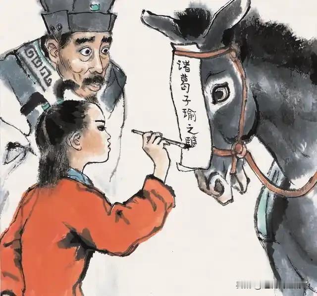 孙权听了就把笔给他,诸葛恪接过笔在诸葛子瑜四个字下面写上之驴。
