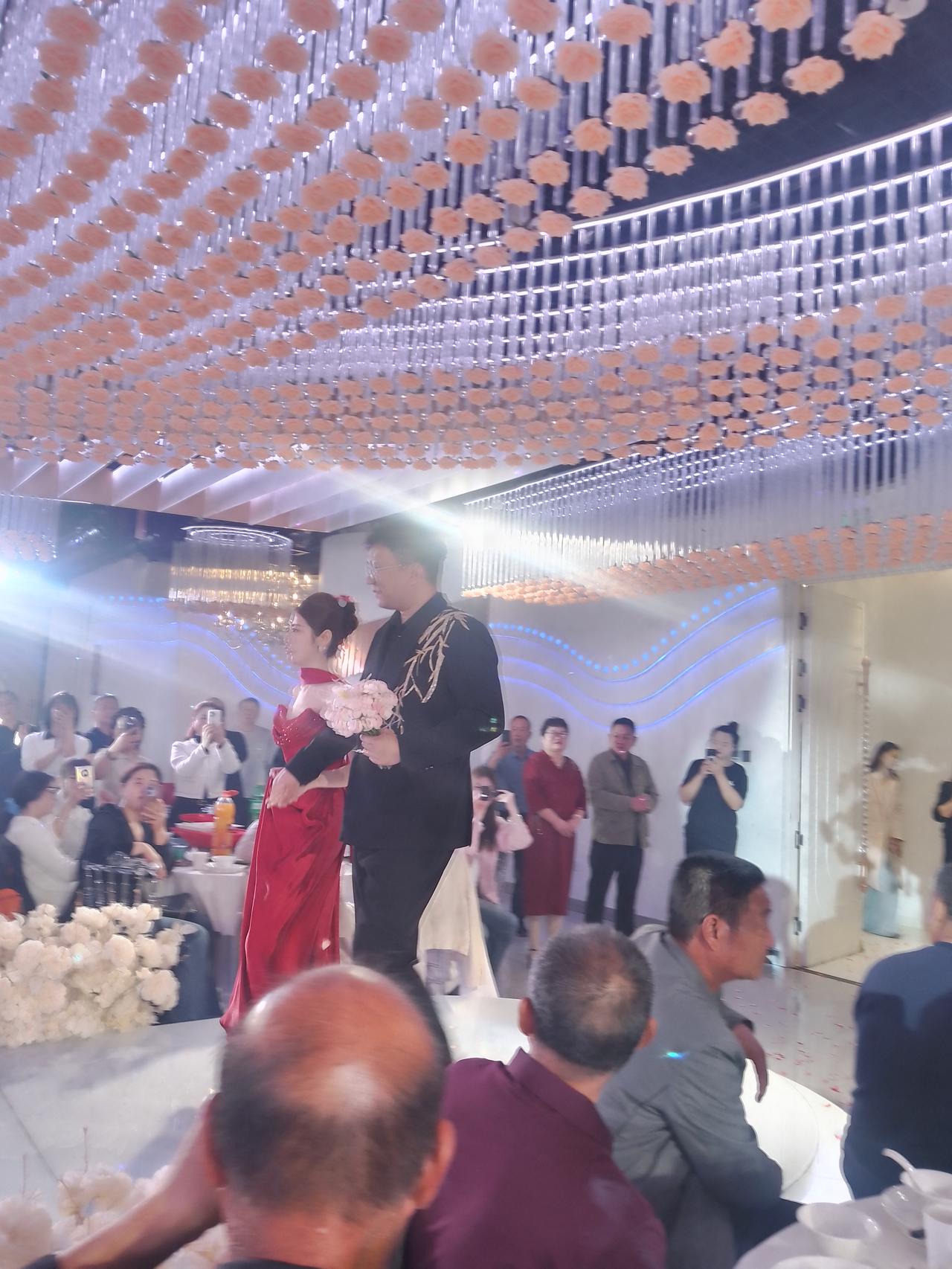 巜七律.贺订婚》 红幔高张喜字盈,华堂璀璨映双星。 佳人曳缎含娇立,才子持花
