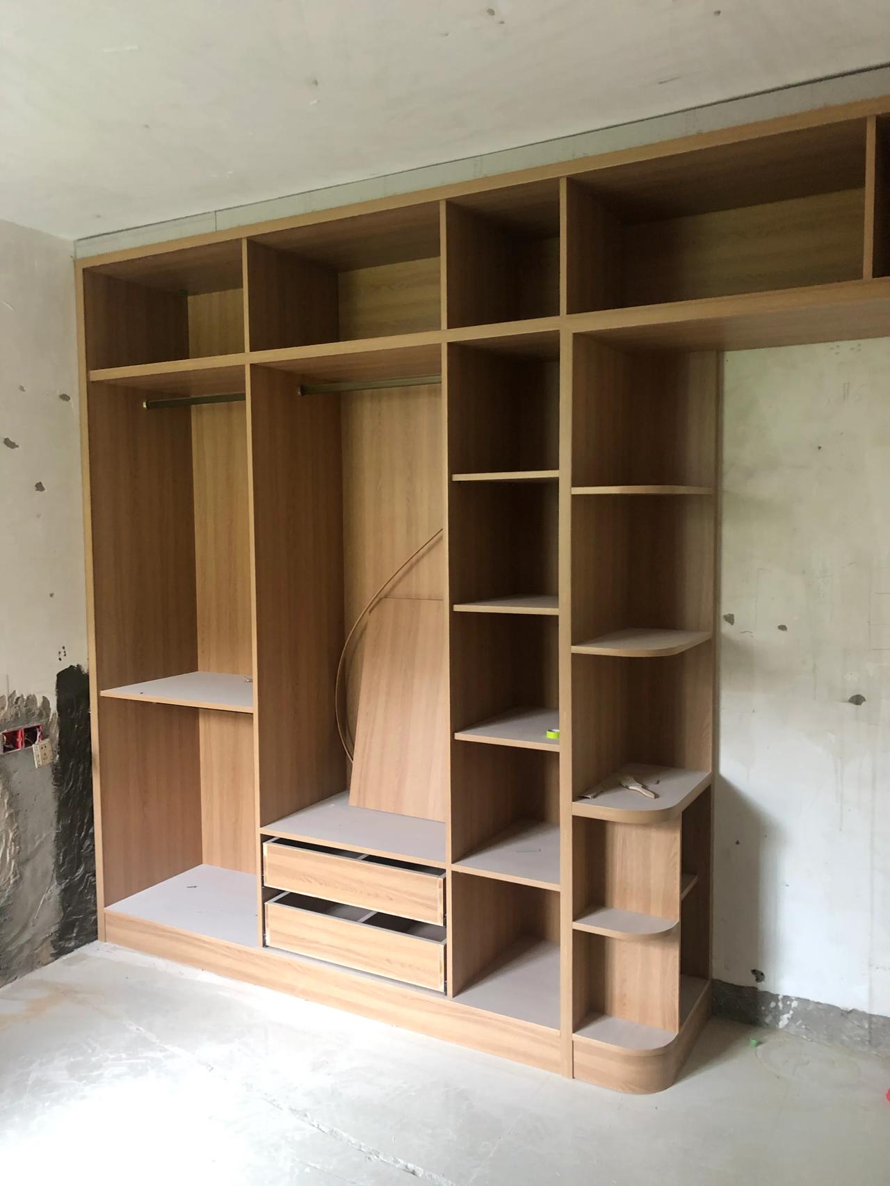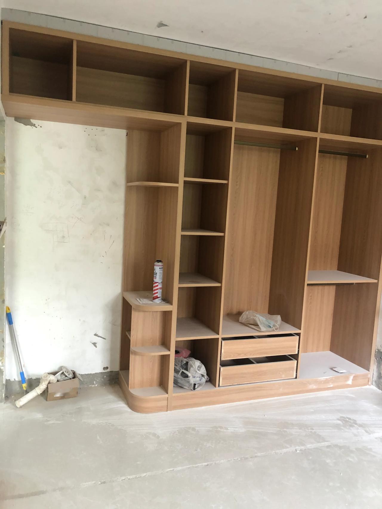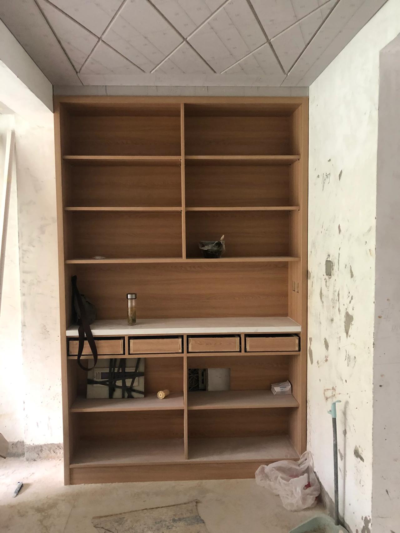 装修个人偏好木工现场做,质量从我接触装修到现在没有听说用坏过,当然暴力破坏不算哈!所有的隔层基本上大多数都是活动的,墙面的边边角角漆工施工可以完美收口,老刘的木工活还是很板正的贵一点也是有道理的[小鼓掌]