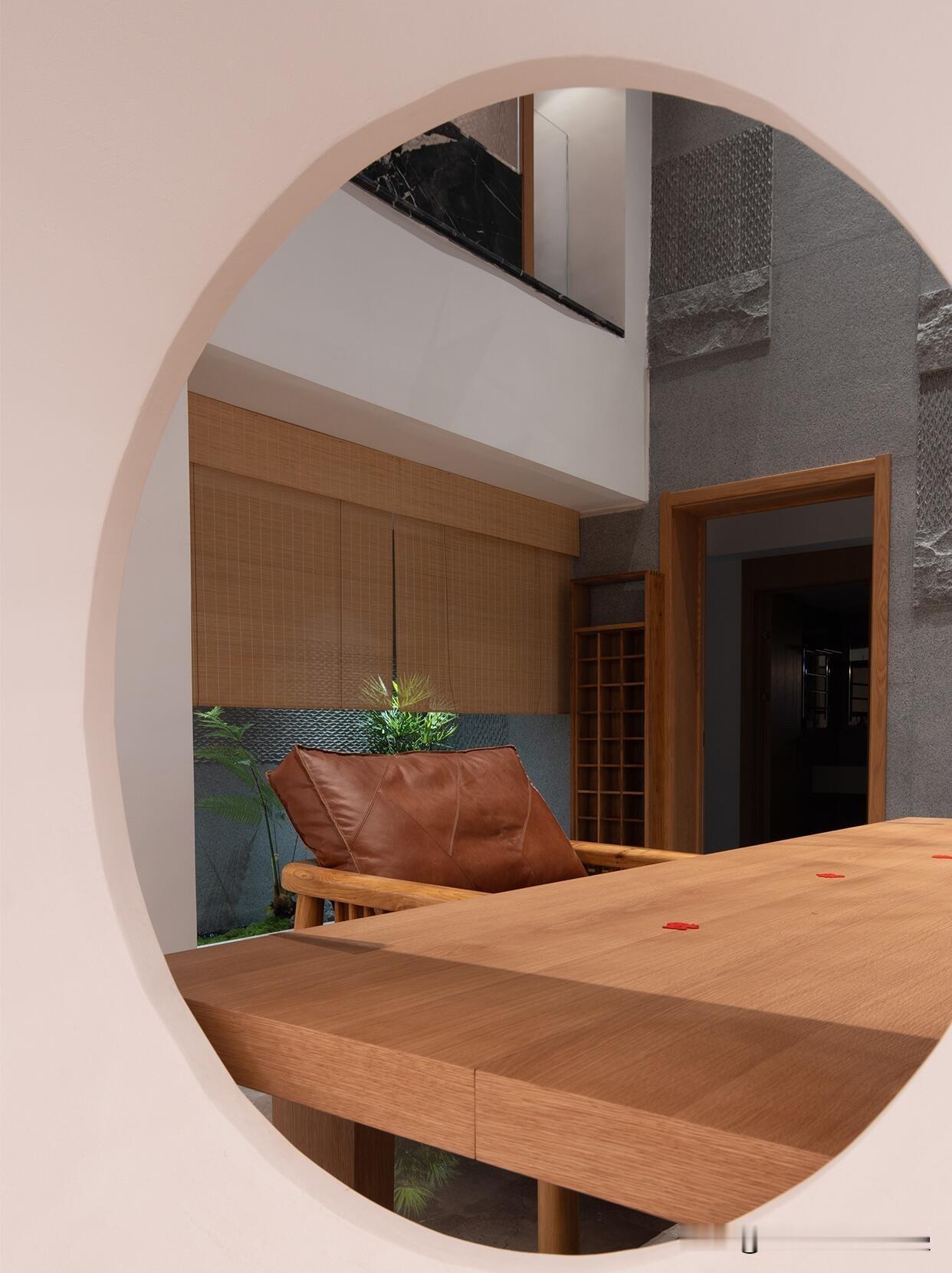 3️⃣圆窗借景法: 在墙上开一个圆,引入一点绿植。这种园林式的设计,让室内瞬间有了生命力。