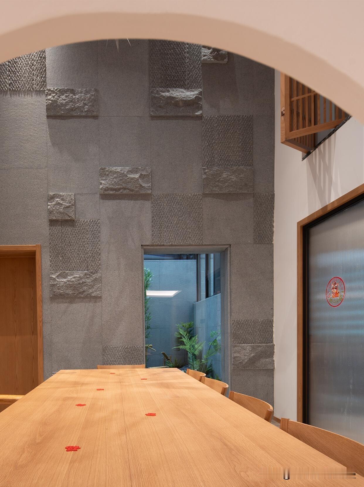 2️⃣石材背景墙: 别再用岩板了!试试这种带凹凸肌理的天然石块拼贴,那种自然生长感才是自然感家的精髓。