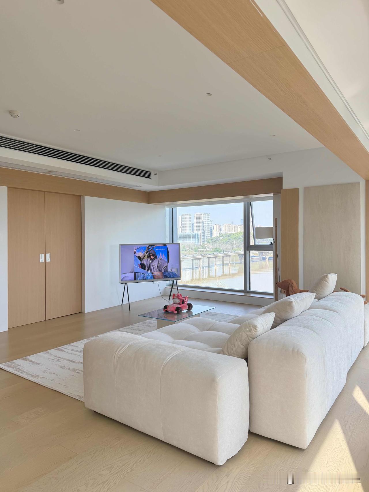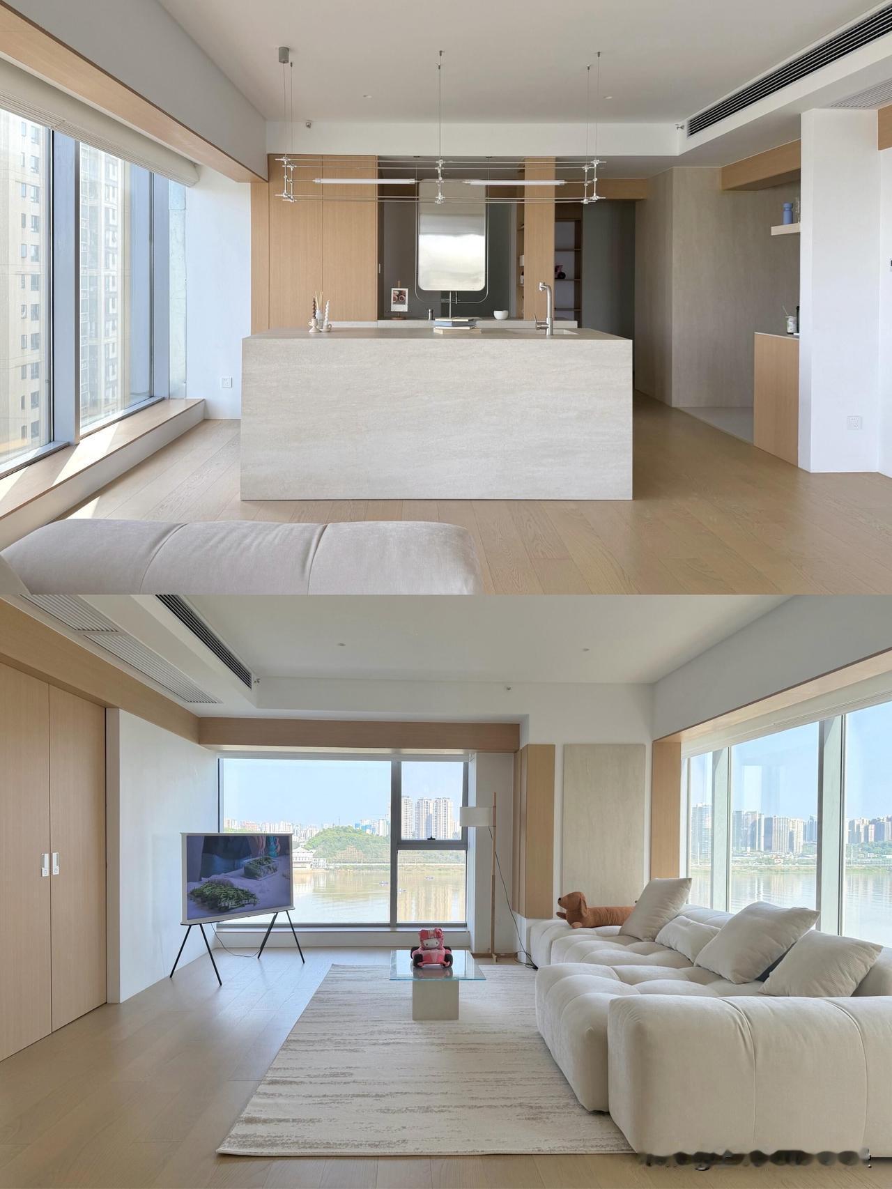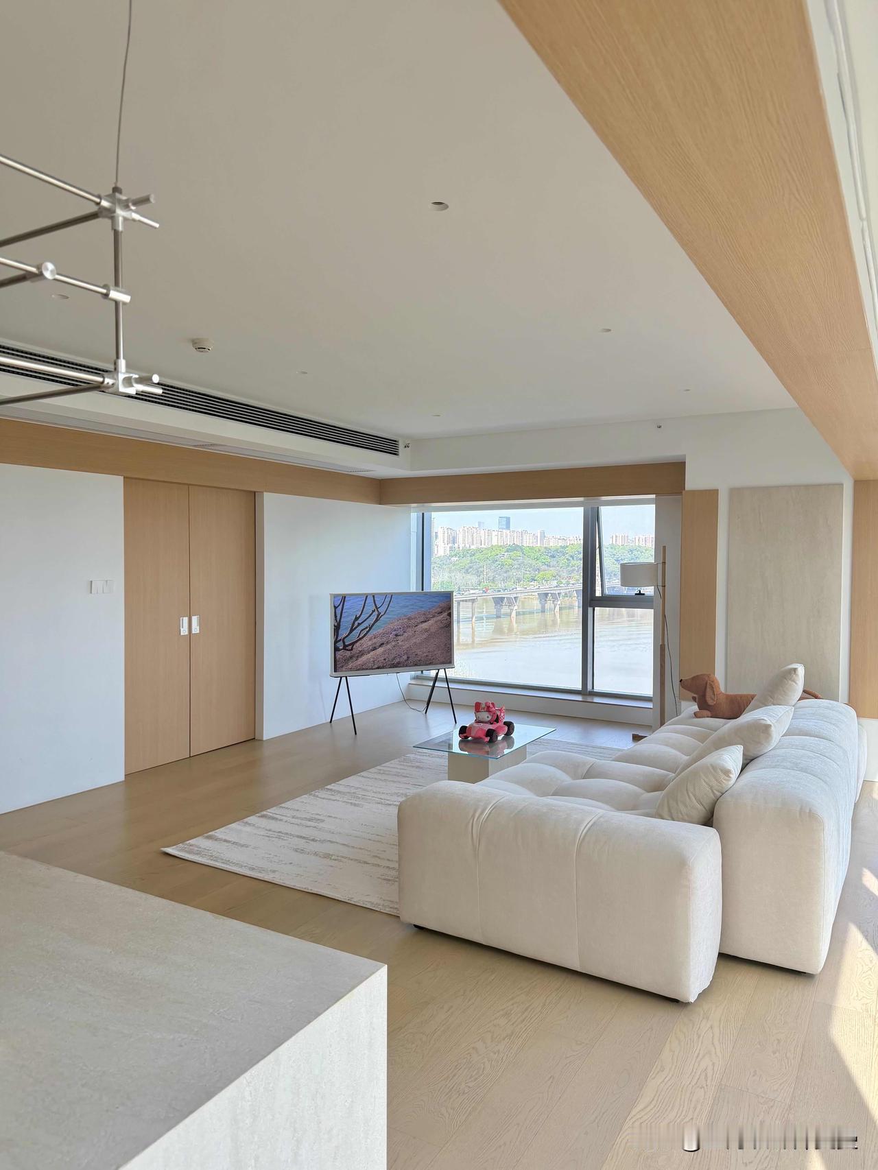 越简单·越高级|上海江景极简原木家✨ 上海设计师新作|9米大横厅·无主灯·一线