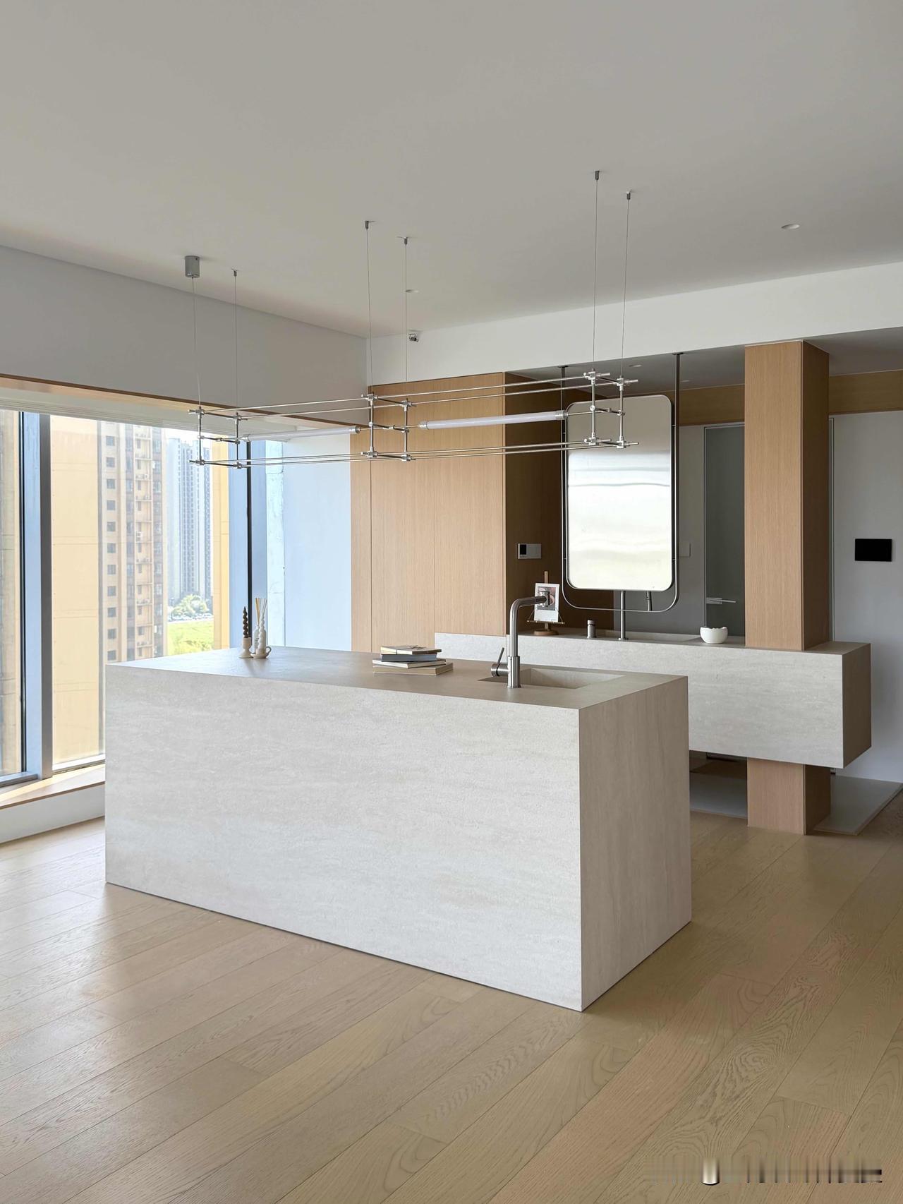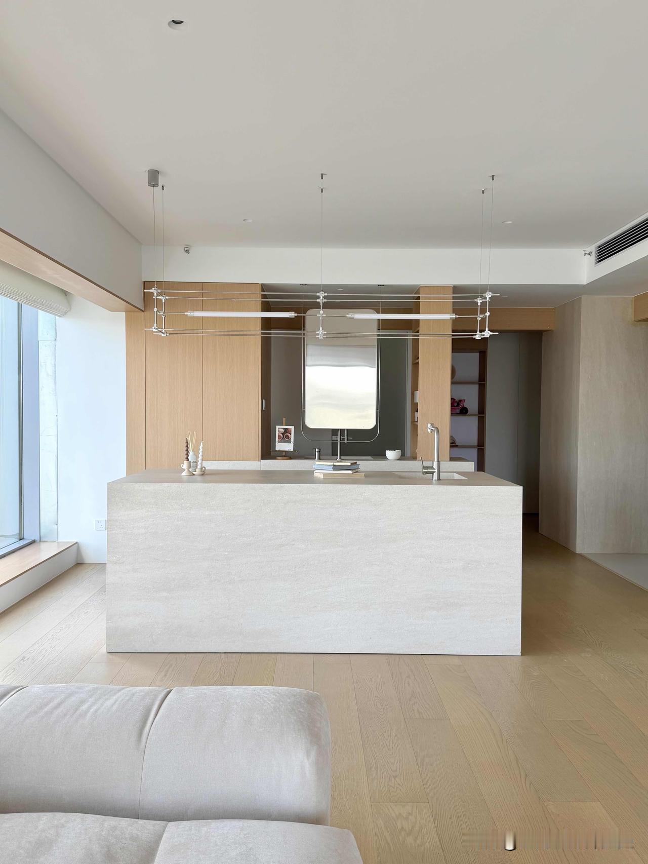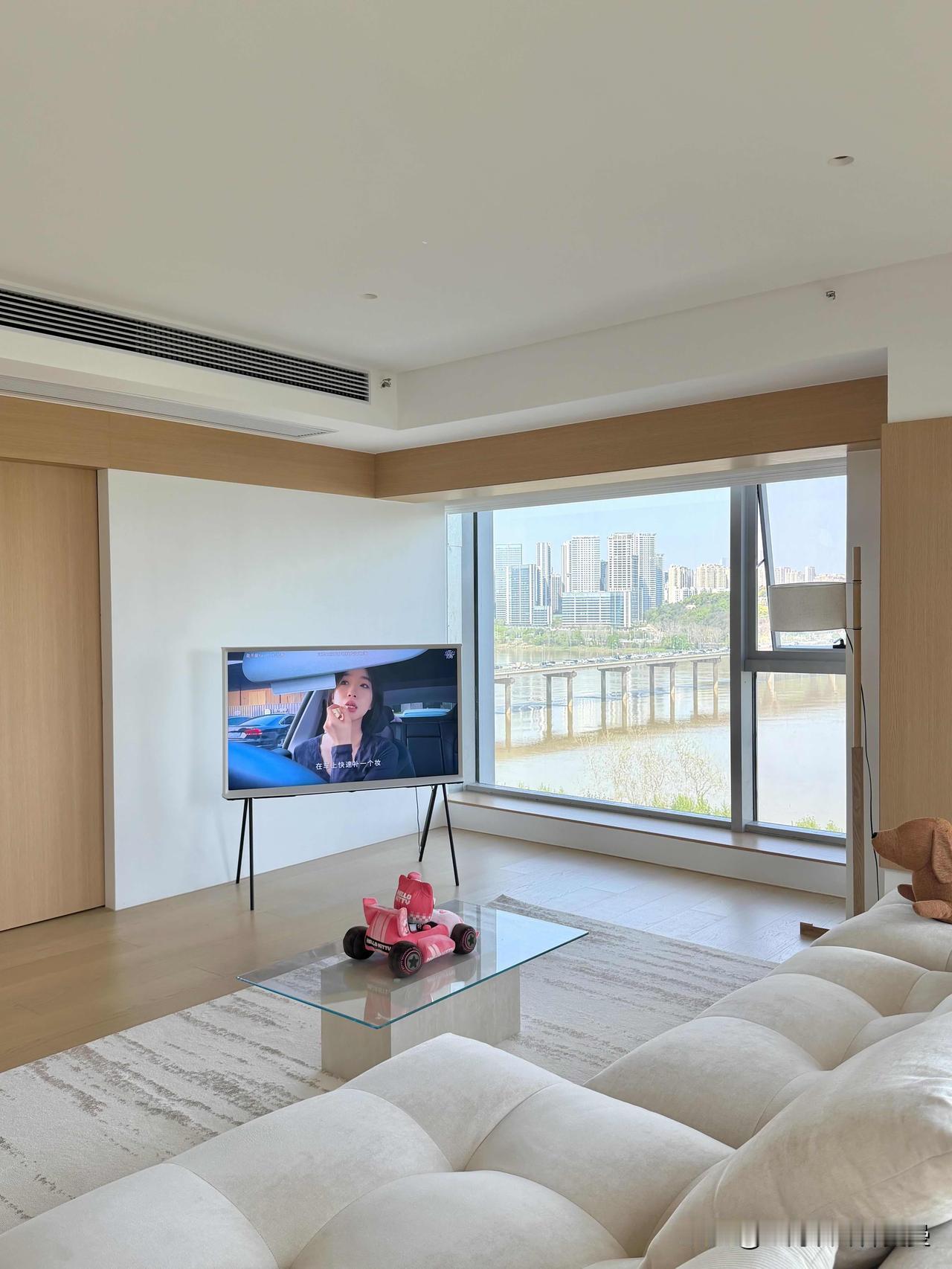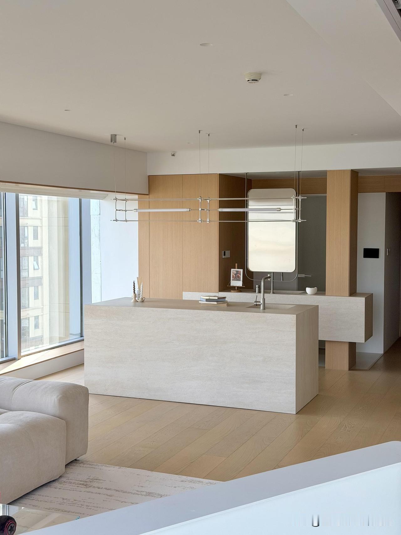 越简单·越高级|上海江景极简原木家✨ 上海设计师新作|9米大横厅·无主灯·一线