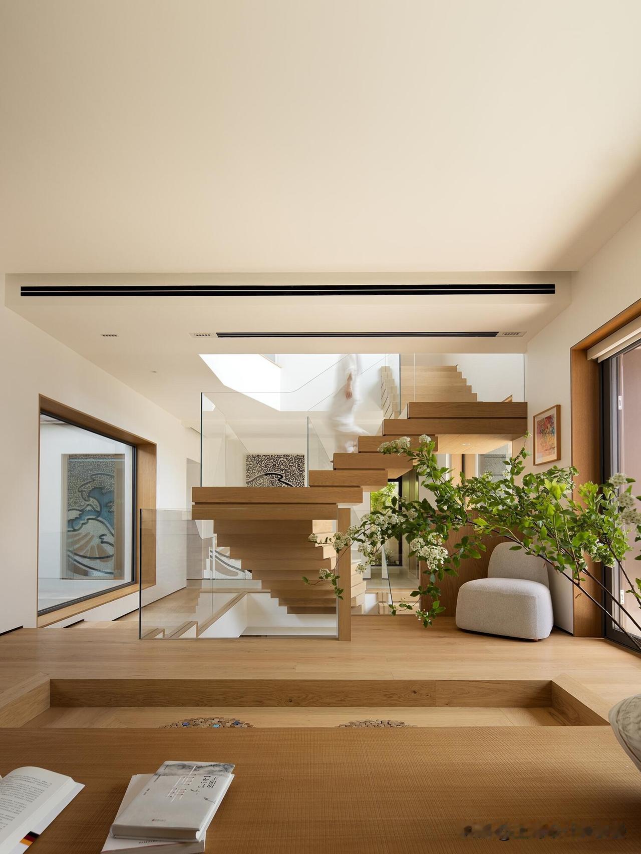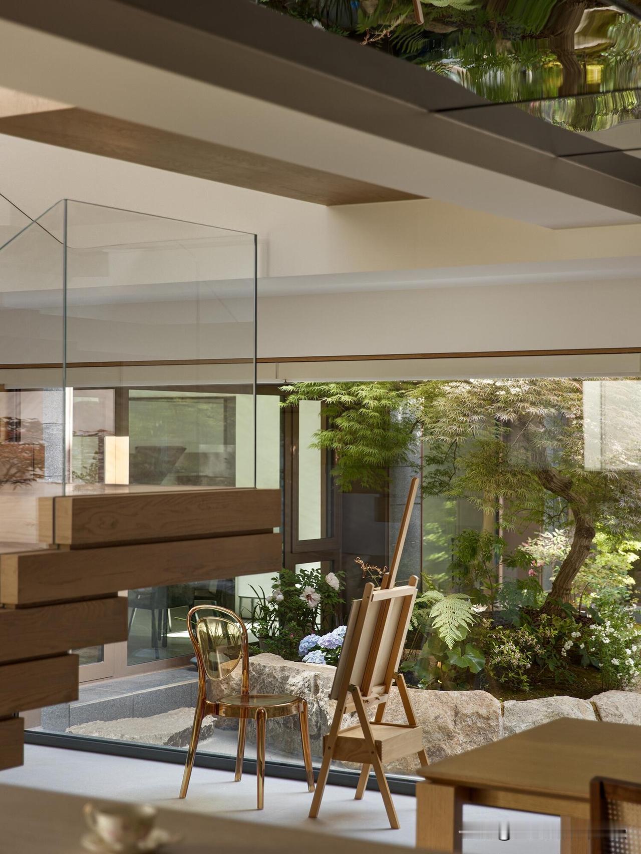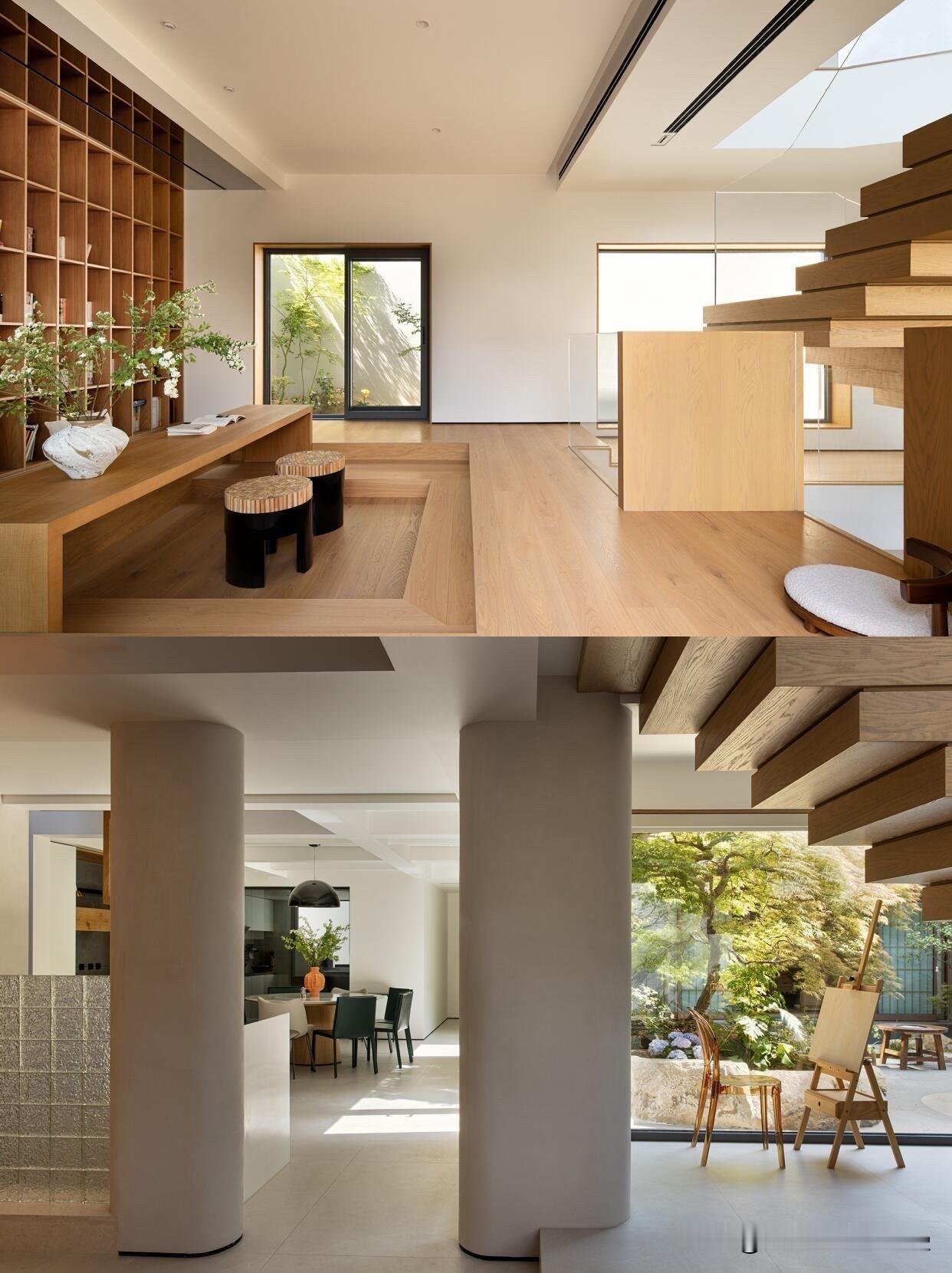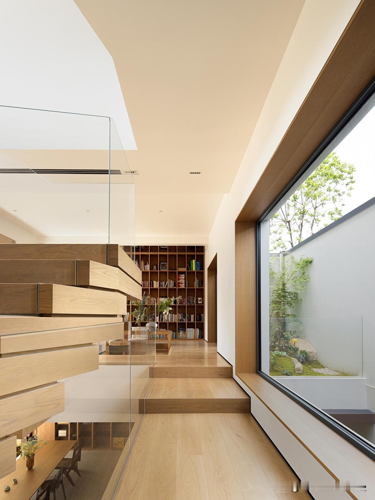 悬浮楼梯拾阶而上,每个高度都是欣赏院景的‘专属机位’