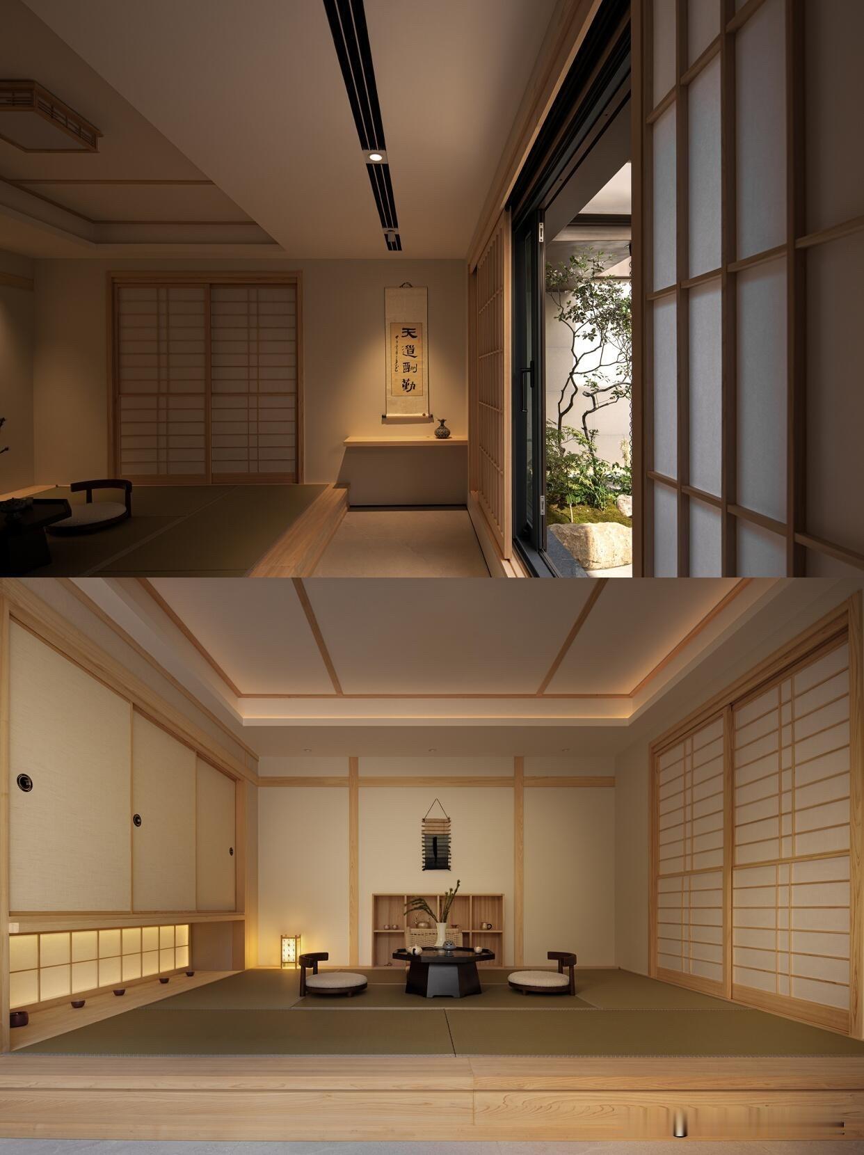 室内没有用复杂的造型和雕花,以素色的原木材质为主,灯光设计选了和院景契合的暖色调——设计师说 “不能过度装修抢了自然的戏”