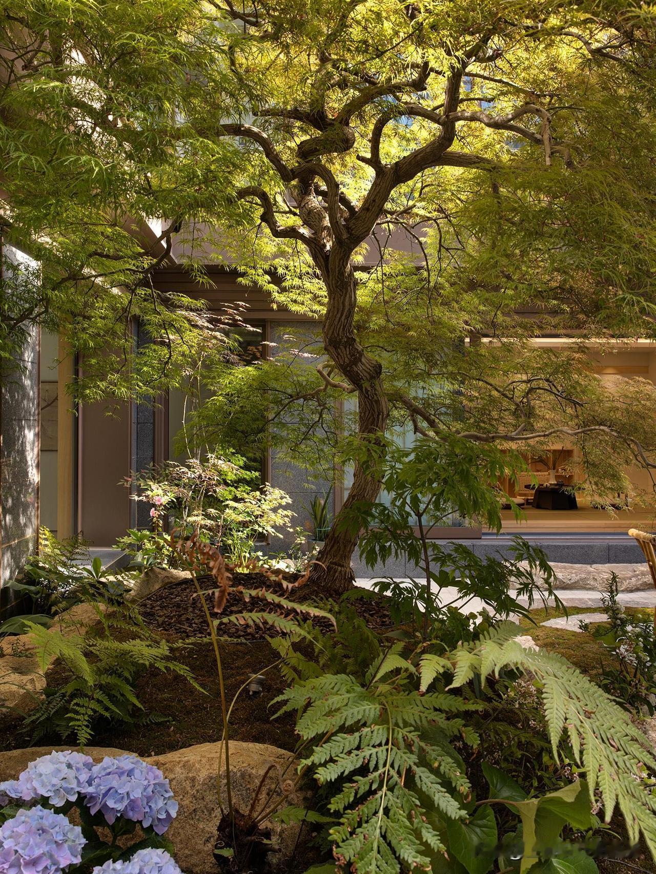 设计师选了春抽芽、秋变红的枫树,配了夏天开的绣球、雨天会泛起清香的苔藓石,有高有低,绿肥红瘦,朋友来家,都会约好下一季还来打卡📷