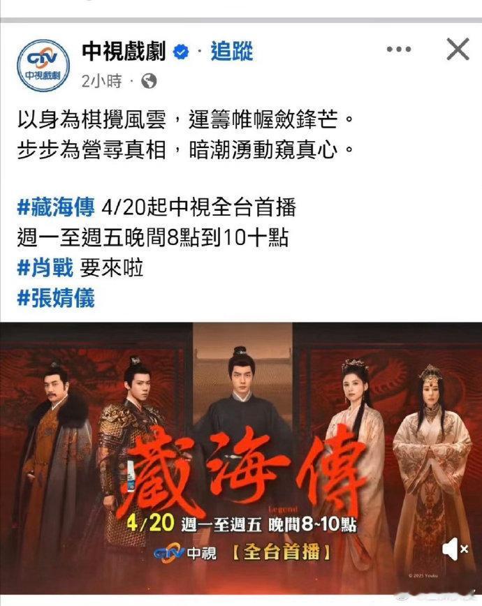 藏海传上星台湾中视中视FB置顶藏海传肖战《藏海传》上星台湾中视,爆剧就是这样的藏
