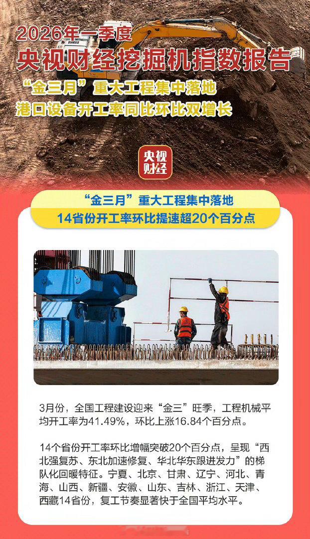 2026年一季度全国工程建设迎强势小阳春,政策前置发力、资金密集到位,重大项目集中开工,复工与投资同步回暖,筑牢经济稳增长底座。