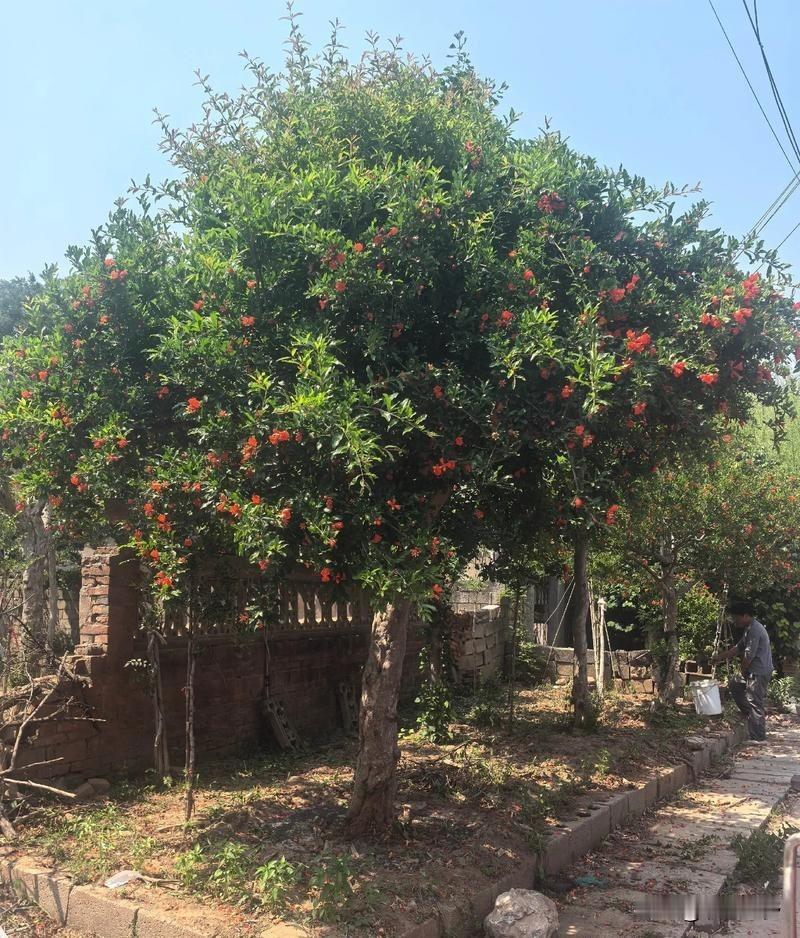石榴树果实饱满,籽多,象征着多子多福、家族兴旺。每到结果时,红彤彤的石榴挂满枝头,很是喜庆。