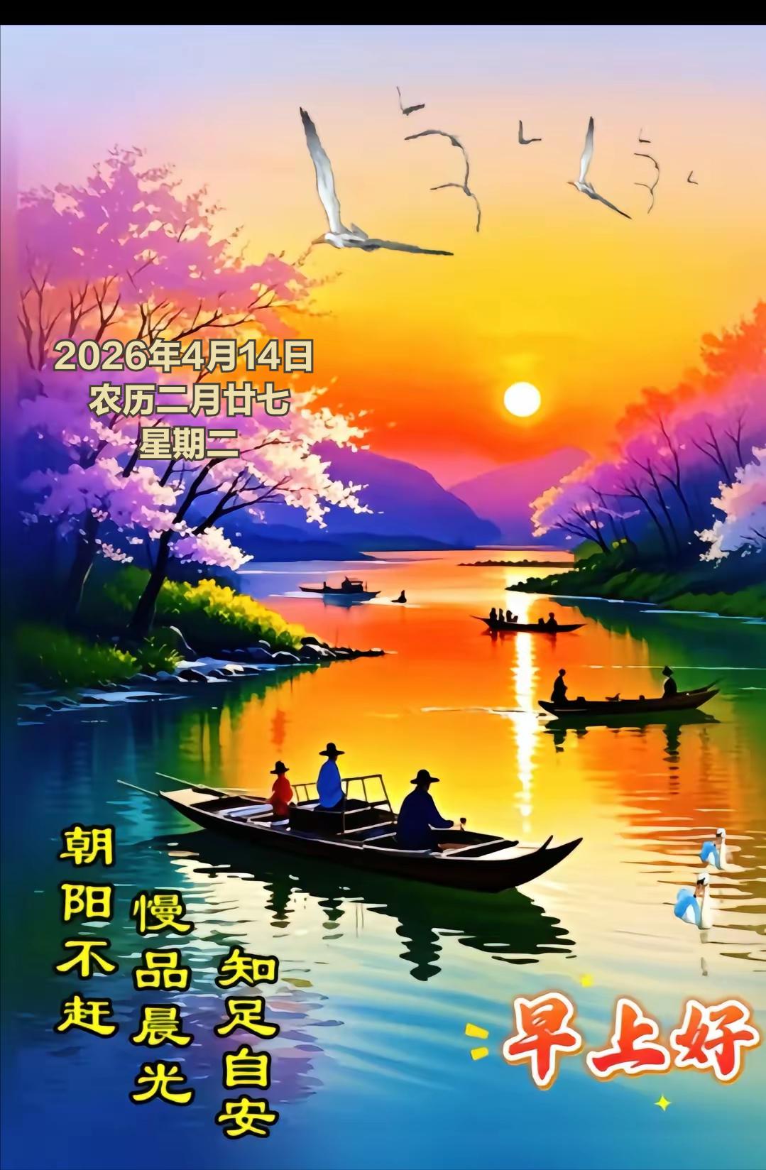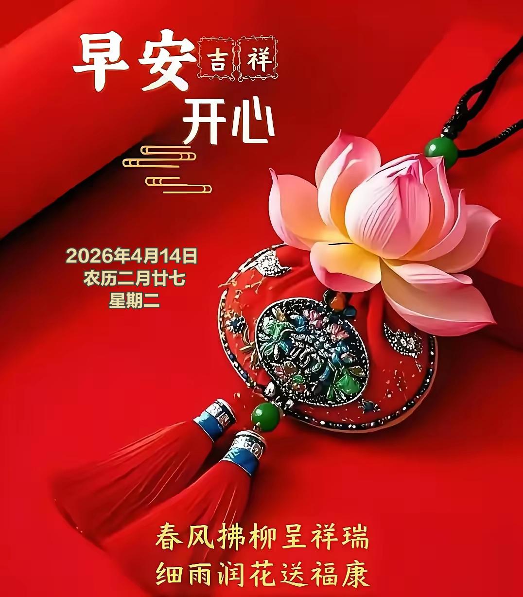 4月14日,农历二月廿七,仲春渐深、暖意融融。民间相传此日为祈丰求安、除晦纳吉的好日子,不少地方有踏青采春、祭花神、洒扫庭院的习俗,寓意扫除旧岁烦扰,迎来春日祥瑞,期盼风调雨顺、五谷丰登、家宅安宁。