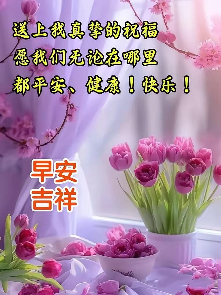 愿家人平安康健,诸事顺心如意,心中有盼、脚下有路,所求皆如愿,所行皆坦途,在春风里奔赴更好的前程,岁岁安康,万事顺遂。