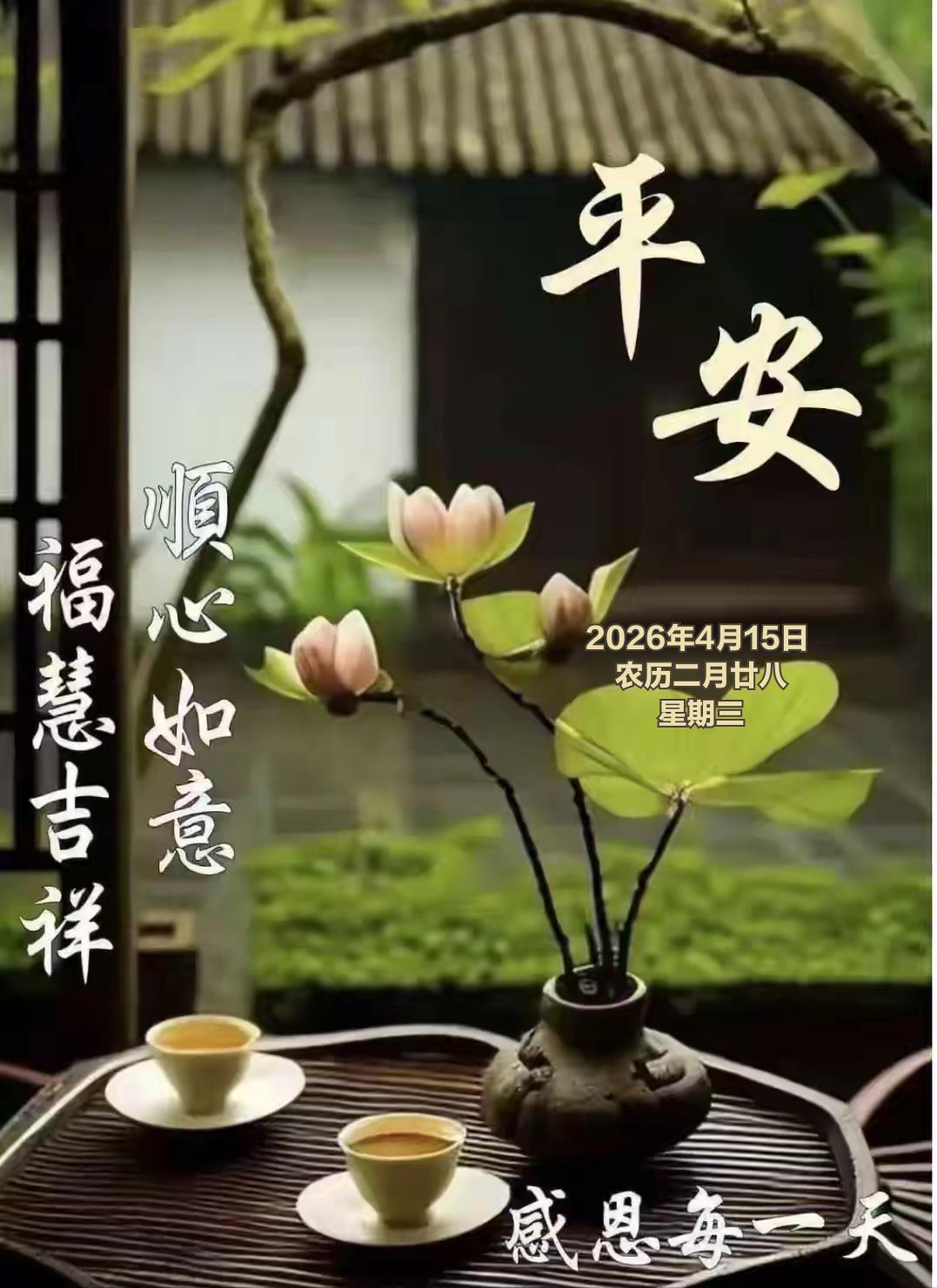 2026年4月15日 农历二月廿八 星期三   4 月15日,农历二月廿八,仲春