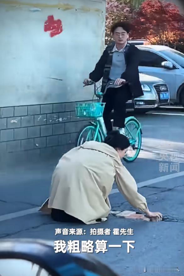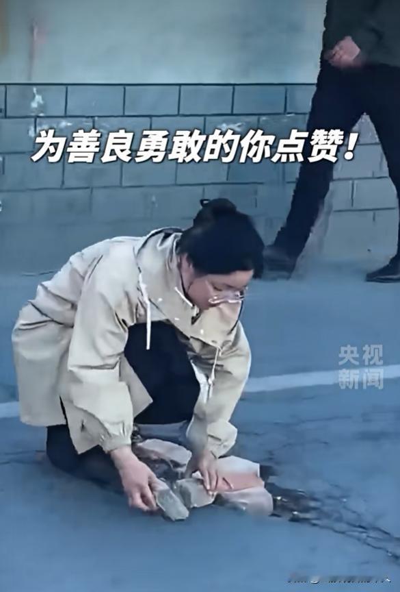 女孩路口持砖张望,路人吓得后退 真相太暖心 上班早高峰 城市路口匆忙 车流裹挟鸣