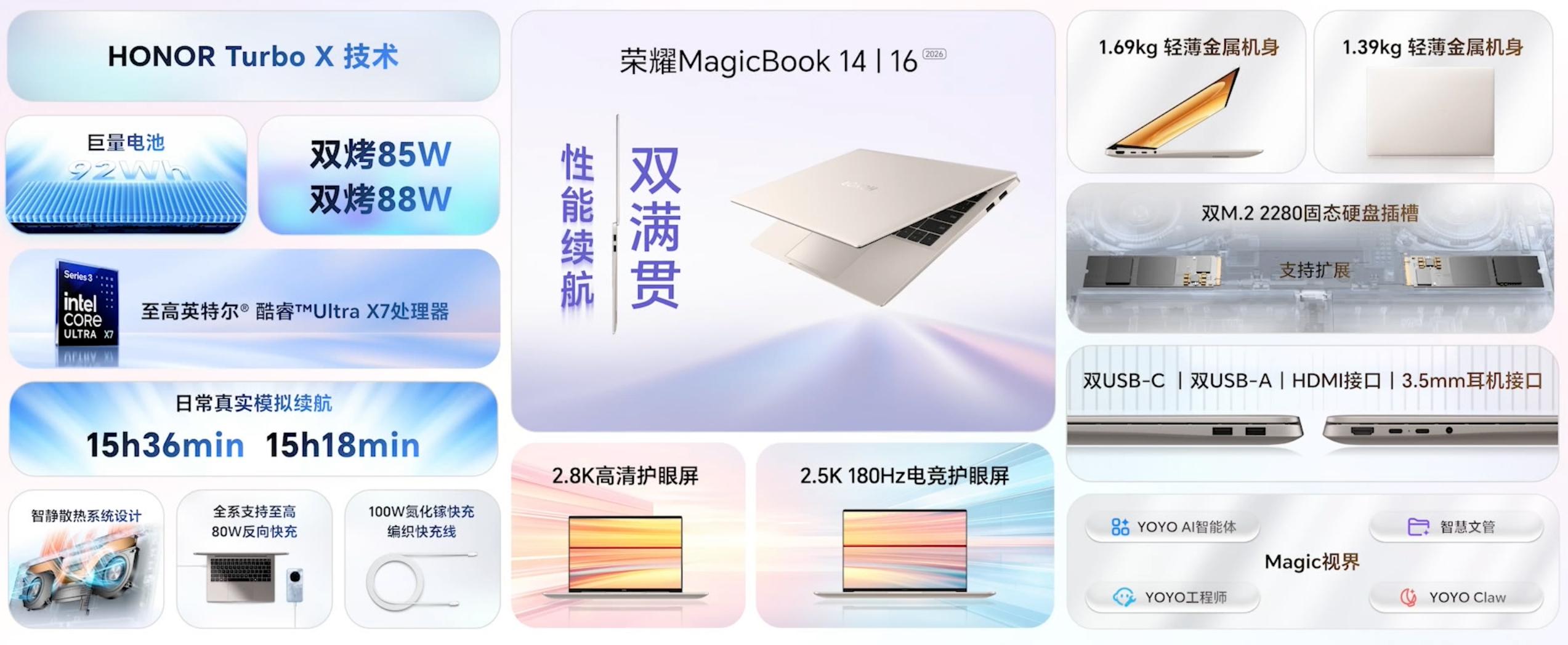 史上最快的发布会,荣耀MagicBook 数字系列发布会结束。MagicBook Pro 系列 2026 款、荣耀 WIN 游戏本系列、X Plus 系列 2026 款等新品 4 月 23 日见