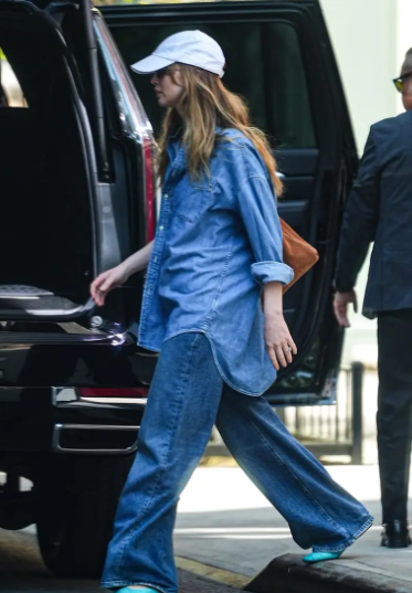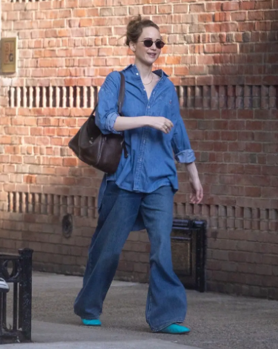 詹妮弗·劳伦斯与丈夫罕见同框,复古牛仔风造型引关注