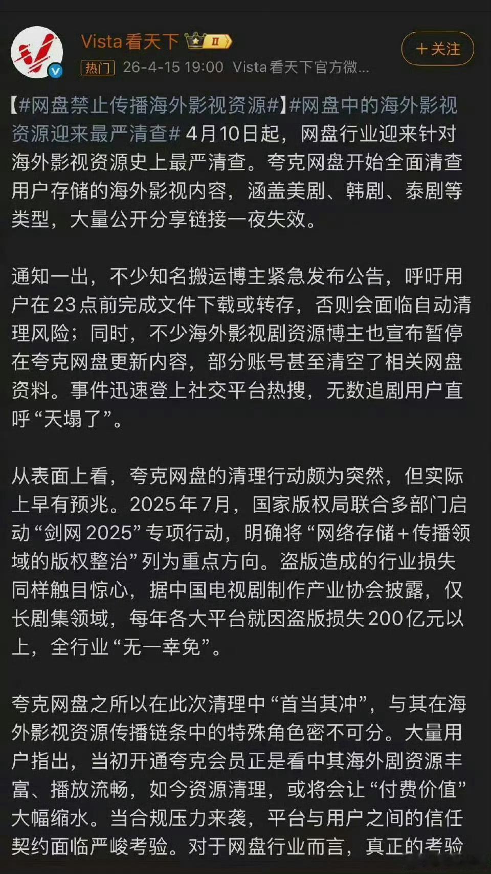 这次主要针对未经授权的海外影视资源,包括美剧、韩剧、泰剧、海外短剧等。感觉大家都是受了环大陆的牵连啊网盘禁止传播海外影视资源